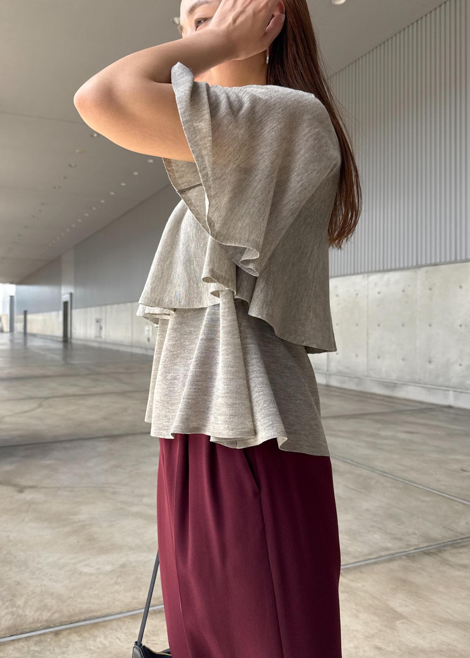 ケープを重ねたようなデザインニット