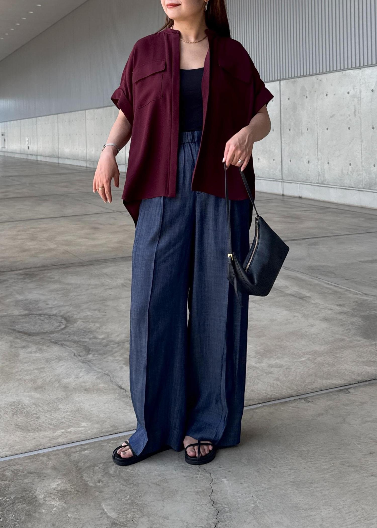 ラインは結構太めですが、落ち感のある素材なのでボリュームが出過ぎることなくスッキリと着用できました! -