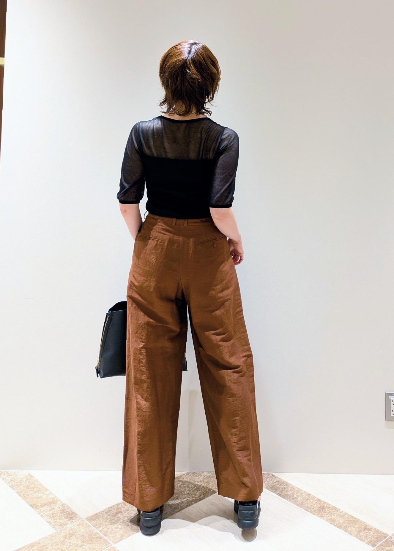 アウトレットROPÉ【洗える】ビスコースリネン スラブスリータックパンツ/一部セットアップ可能ブラウン / 38¥12,650レビュー身長167cm、38サイズ着用。