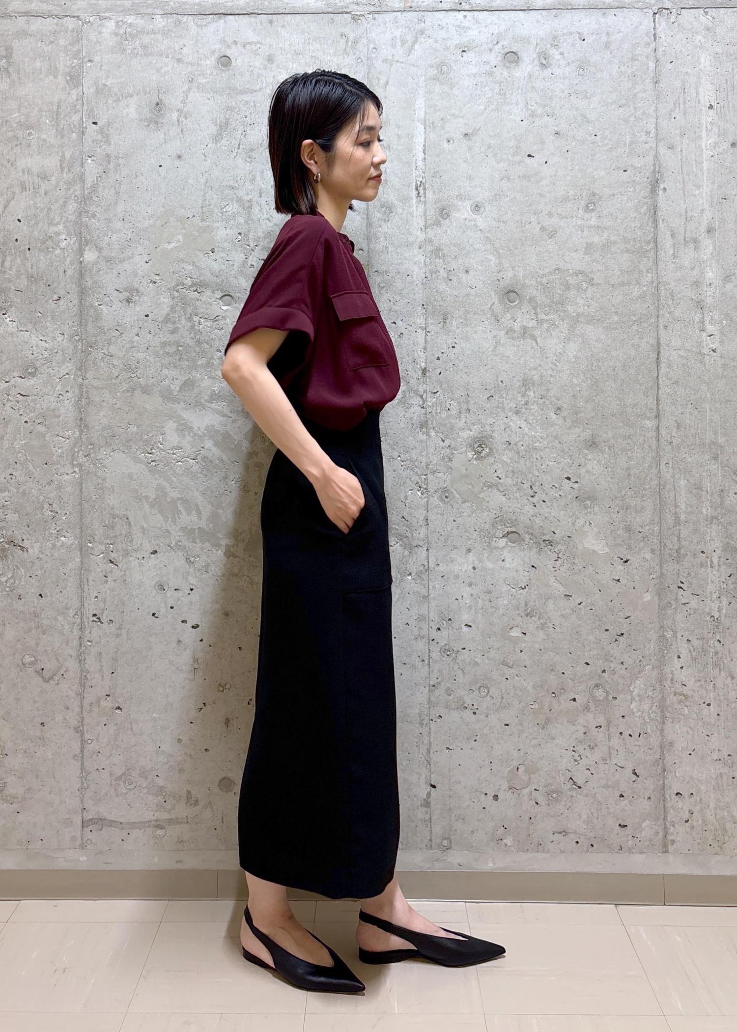 ブラックのタイトスカートを合わせてシックで、キレイめな印象に。