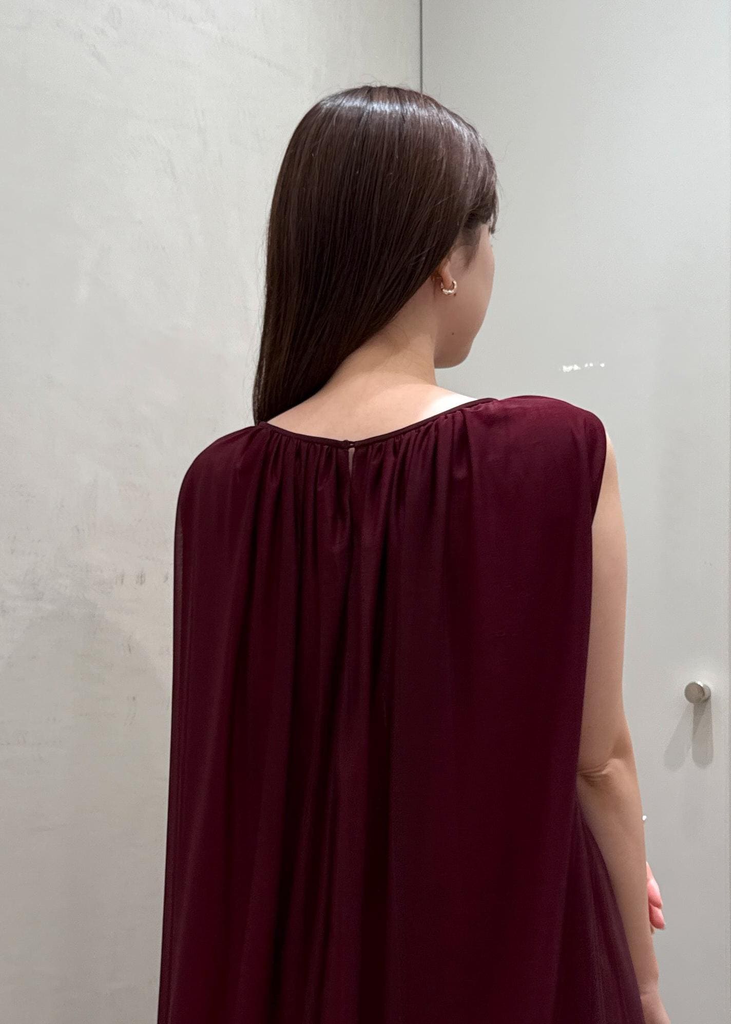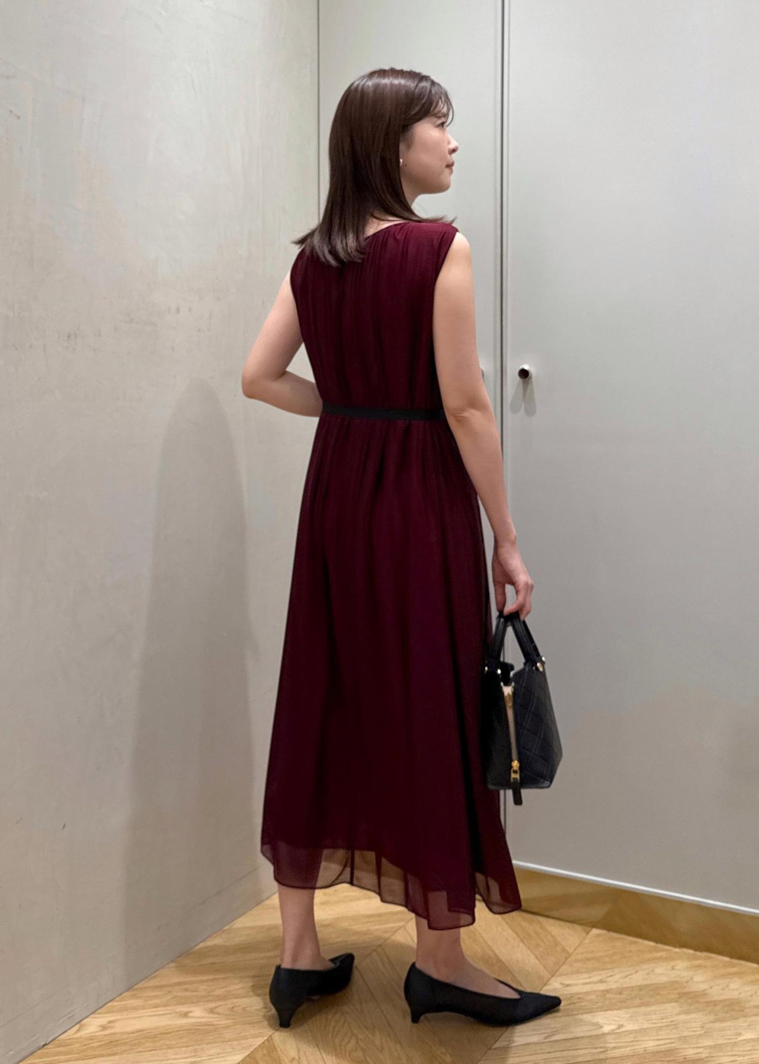 アウトレットROPÉ【洗える・新色追加】ブライトネスヤーンギャザーワンピースワイン / 38¥17,820レビュー身長160cm、38サイズ着用。