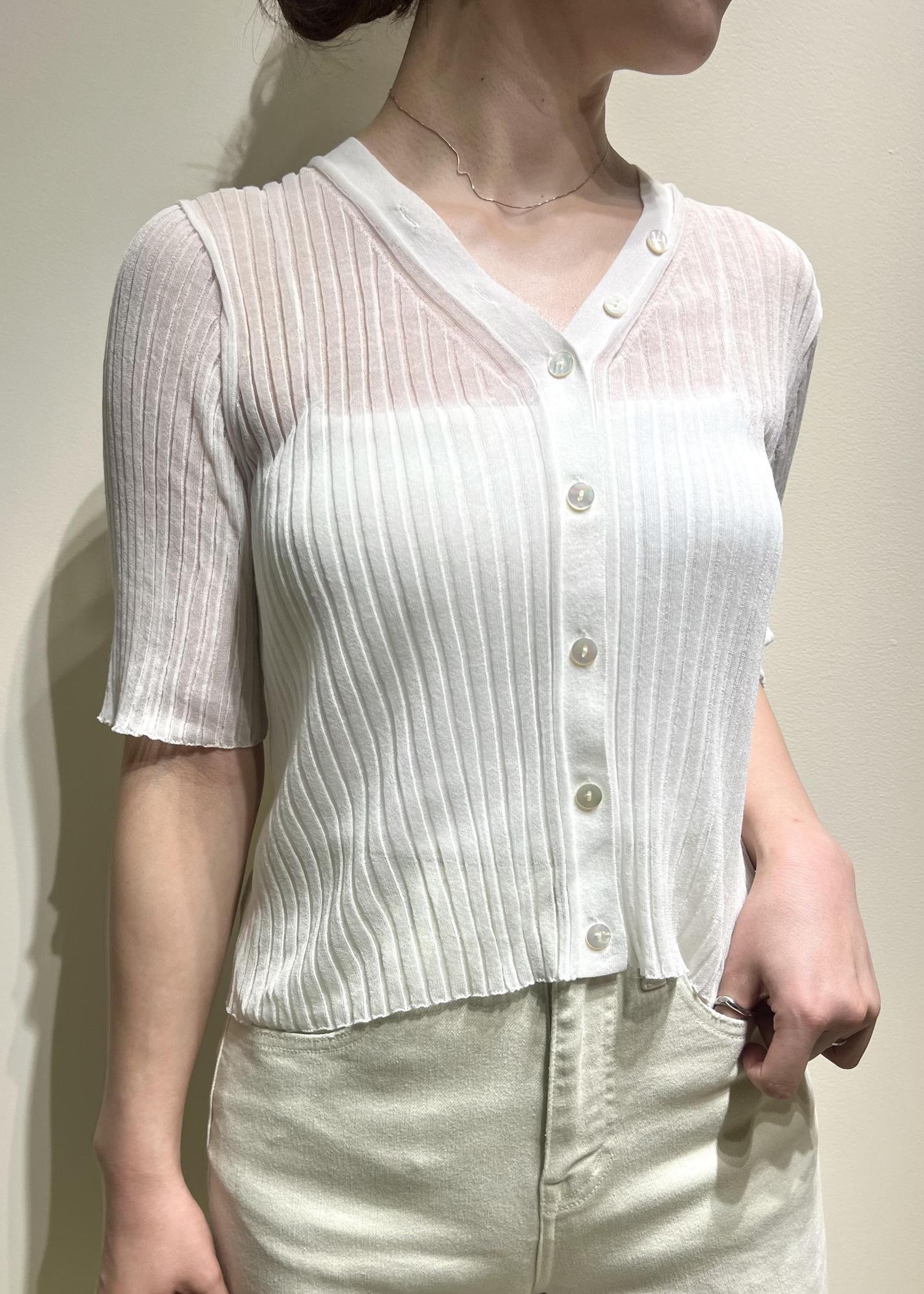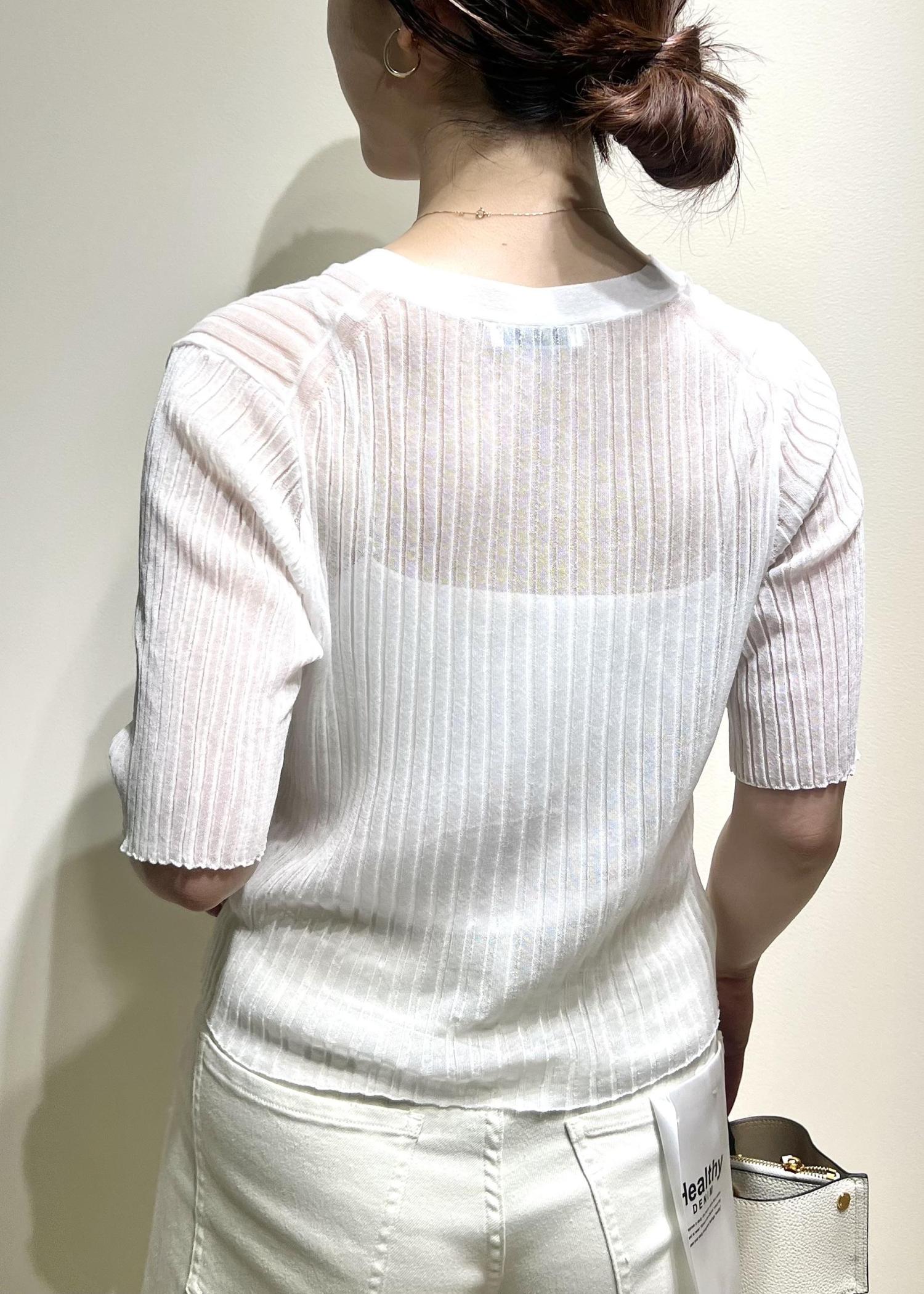 アウトレットROPÉシアーリブカーディガン/洗えるホワイト / F¥13,090レビュー着丈は腰周りが隠れるくらいでお腹やお尻周りはカバーできません。