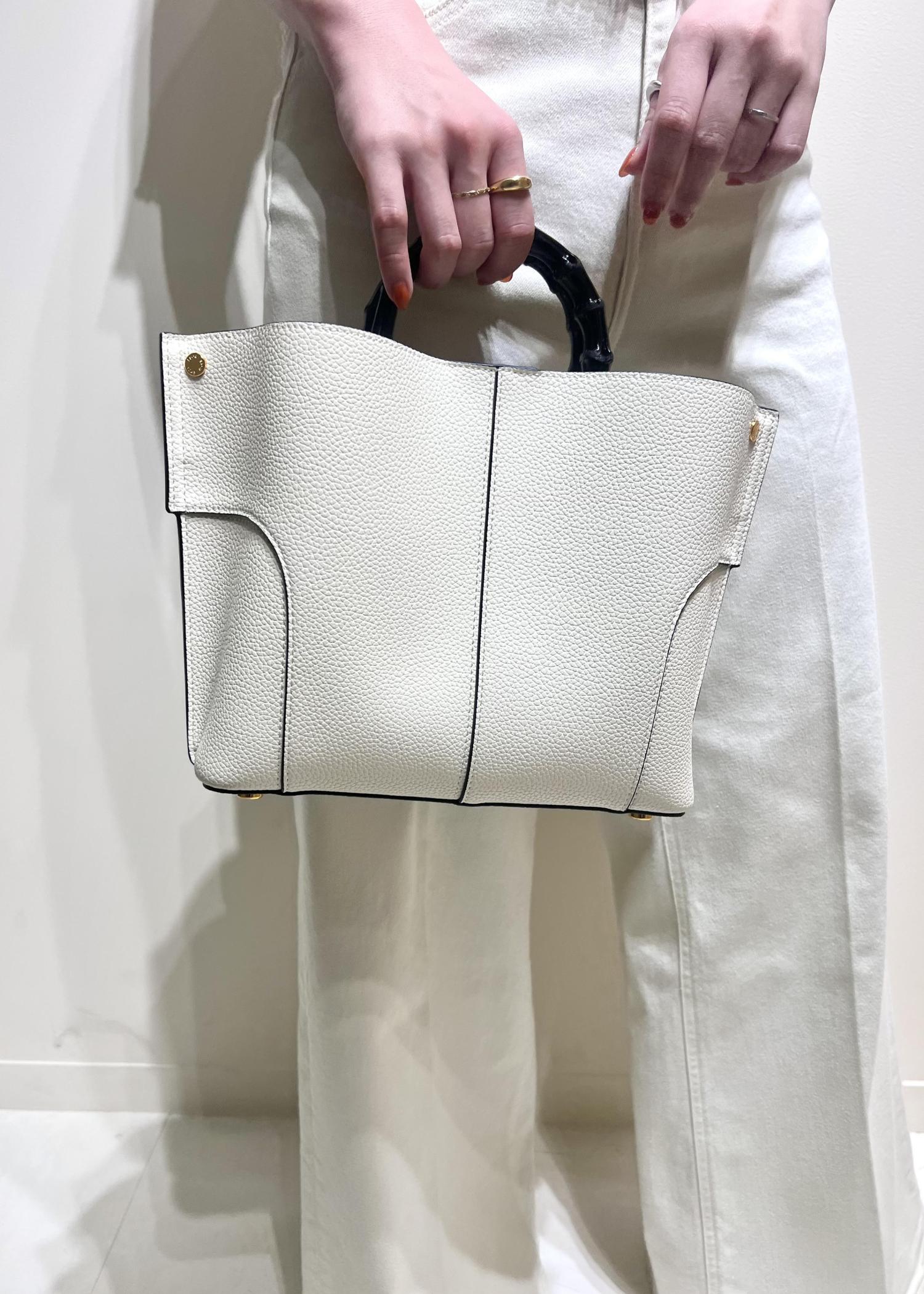 ROPÉ【E'POR】BAMBOO BAG Medium【超軽量】【25AW】オフホワイト / F¥18,700レビュー長財布、小さめポーチ、iPad mini、ハンカチ、日傘が入るサイズ感。