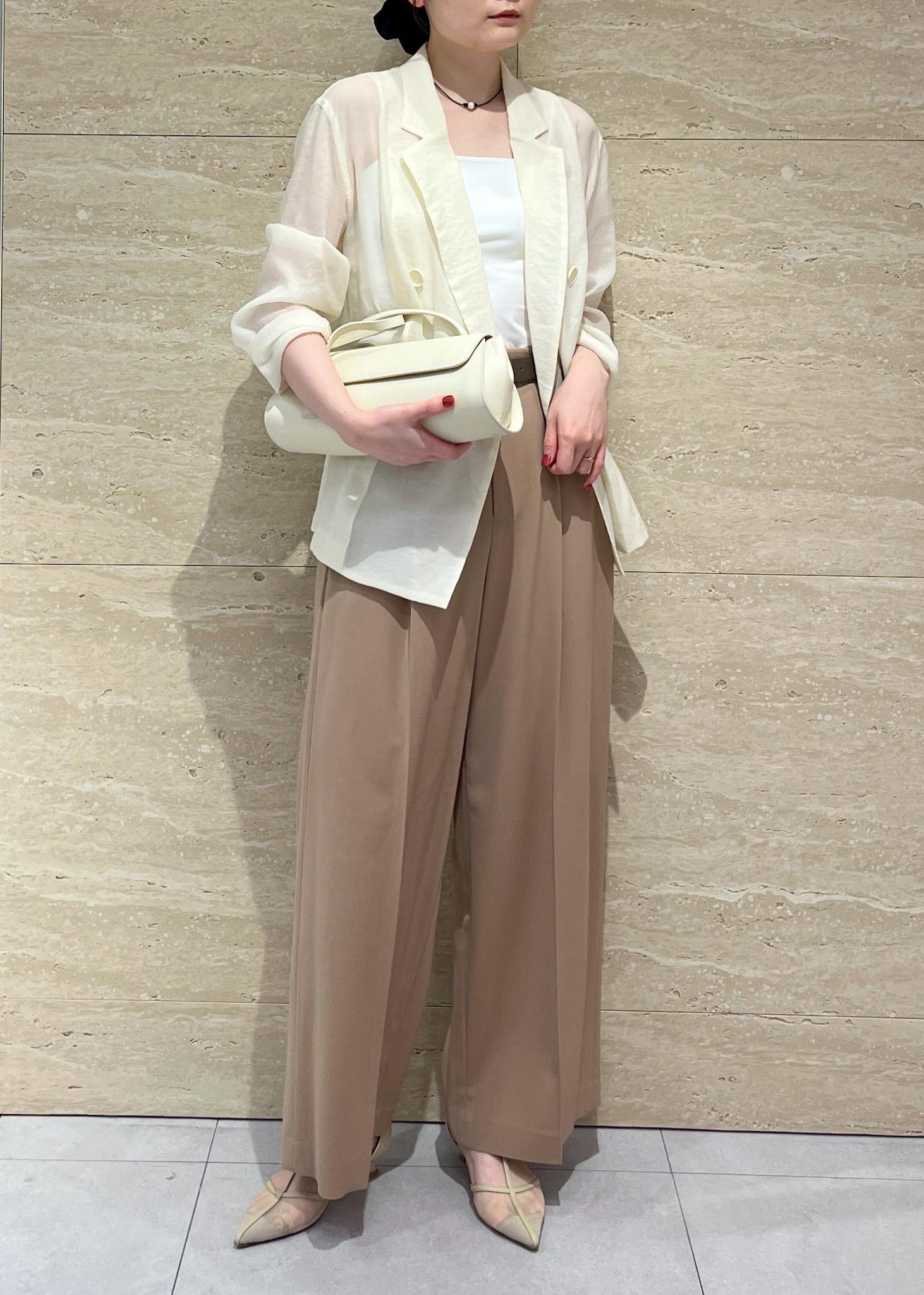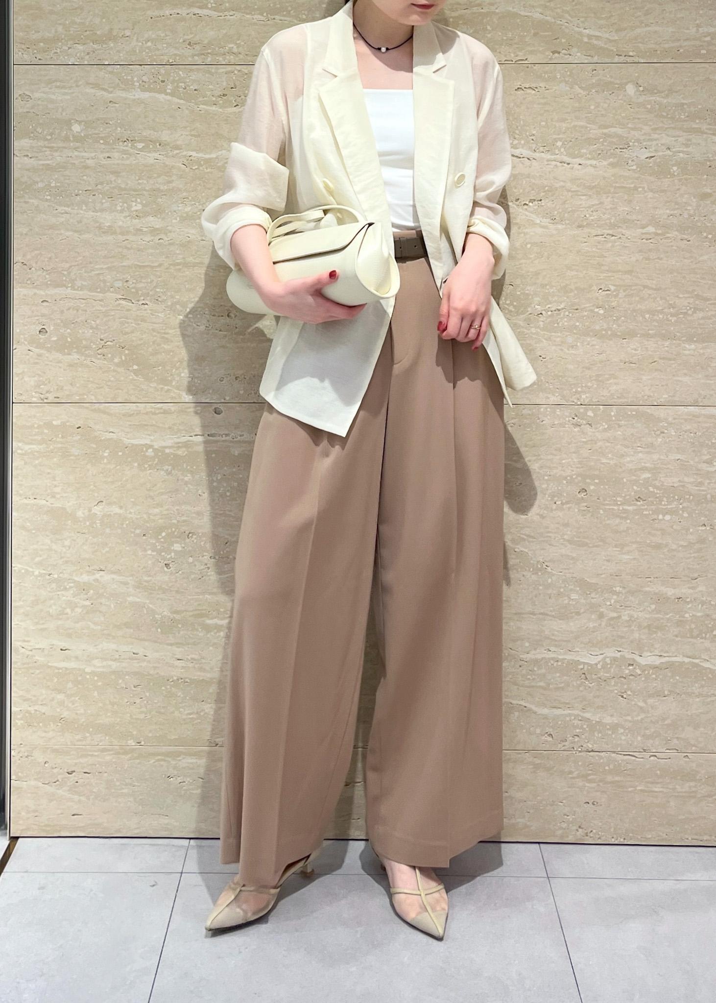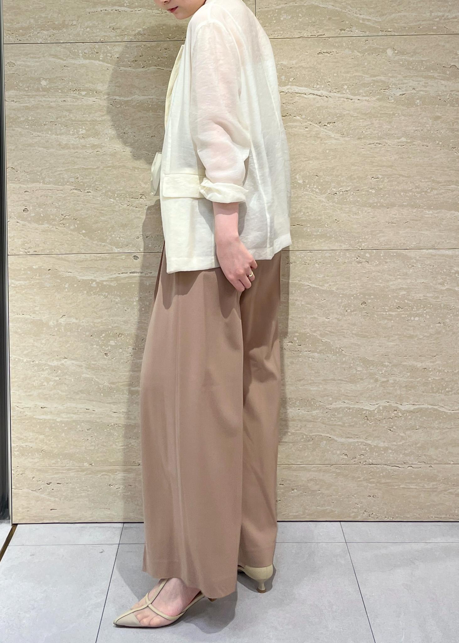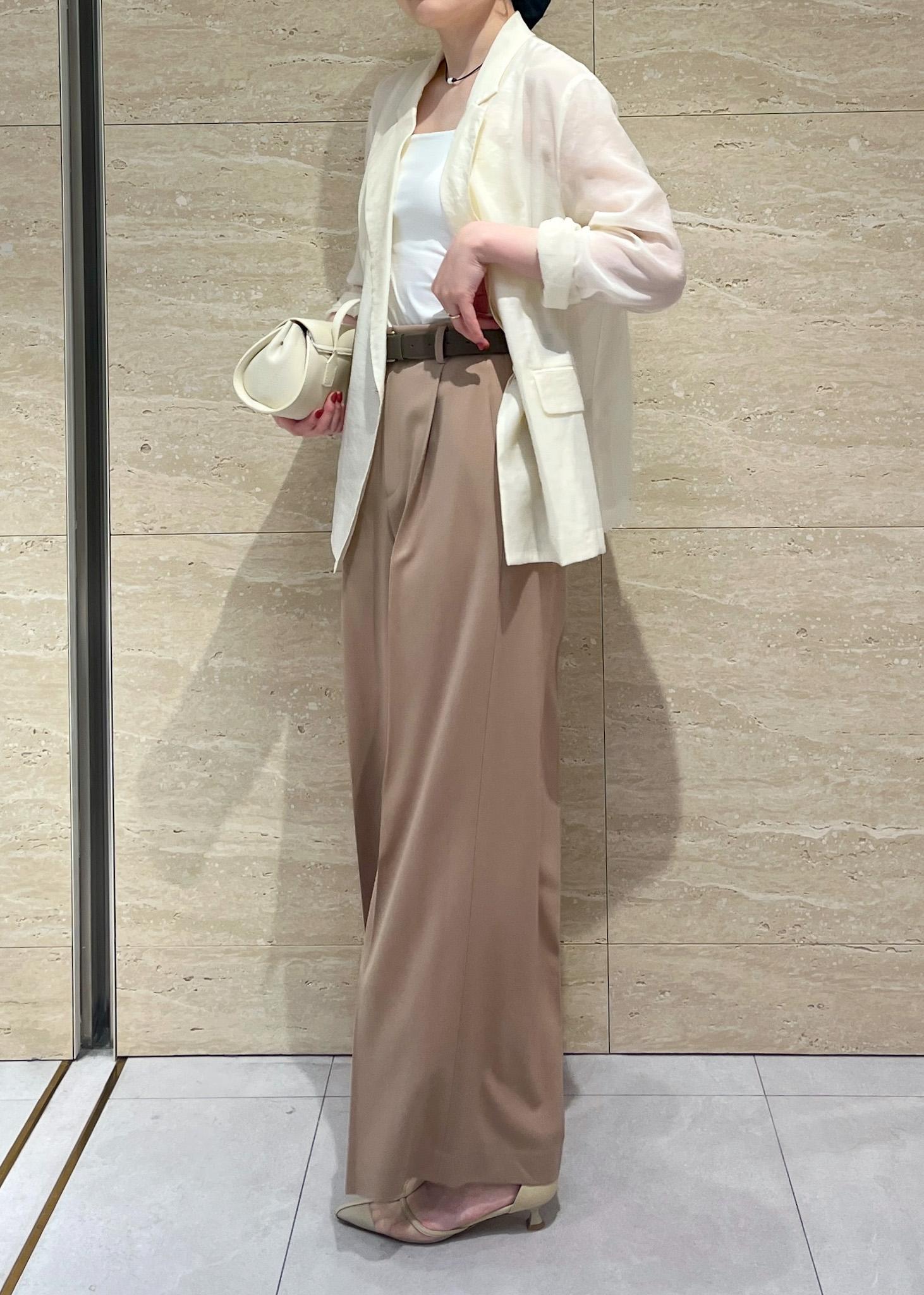 ウール生地ですが、生地自体は薄手で裏地もついていないため、夏場でも問題なく履けるアイテムです。