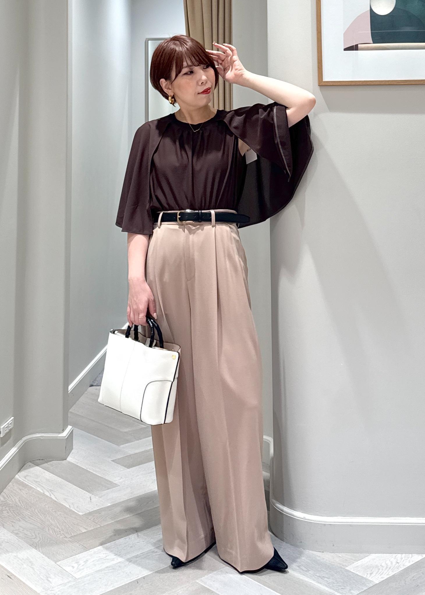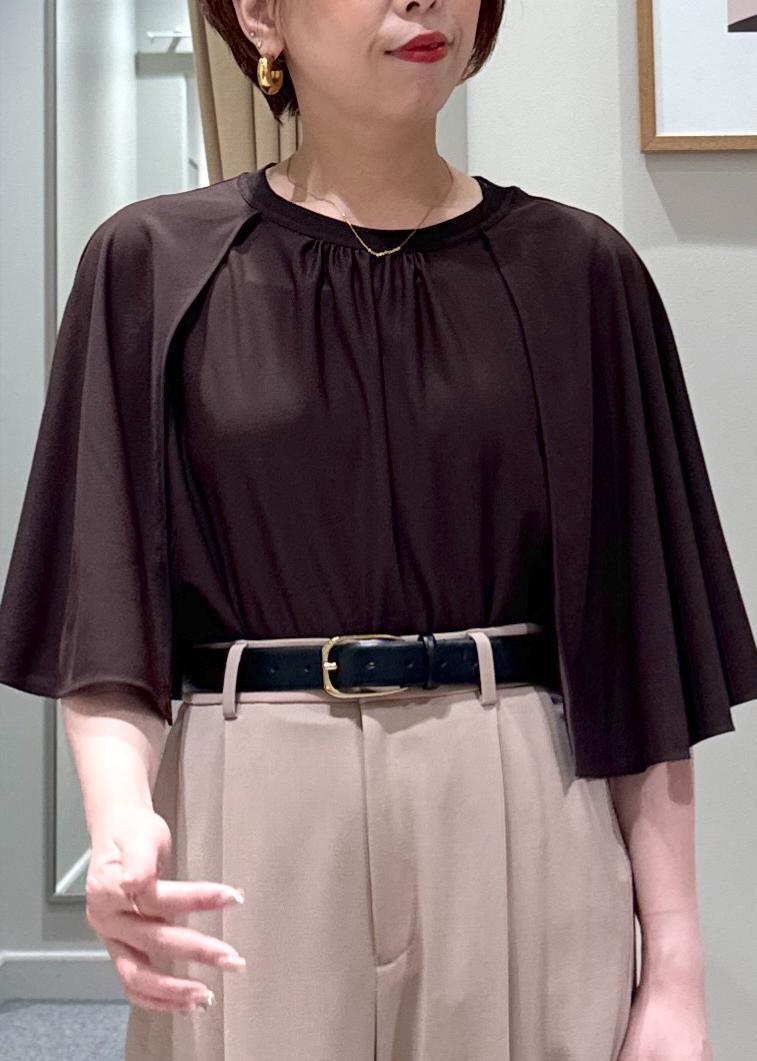 ROPÉ【洗える】ケープスリーブ リンキングブラウスダークブラウン / F¥13,200レビューケープを羽織っている様にも見えるデザイントップス。