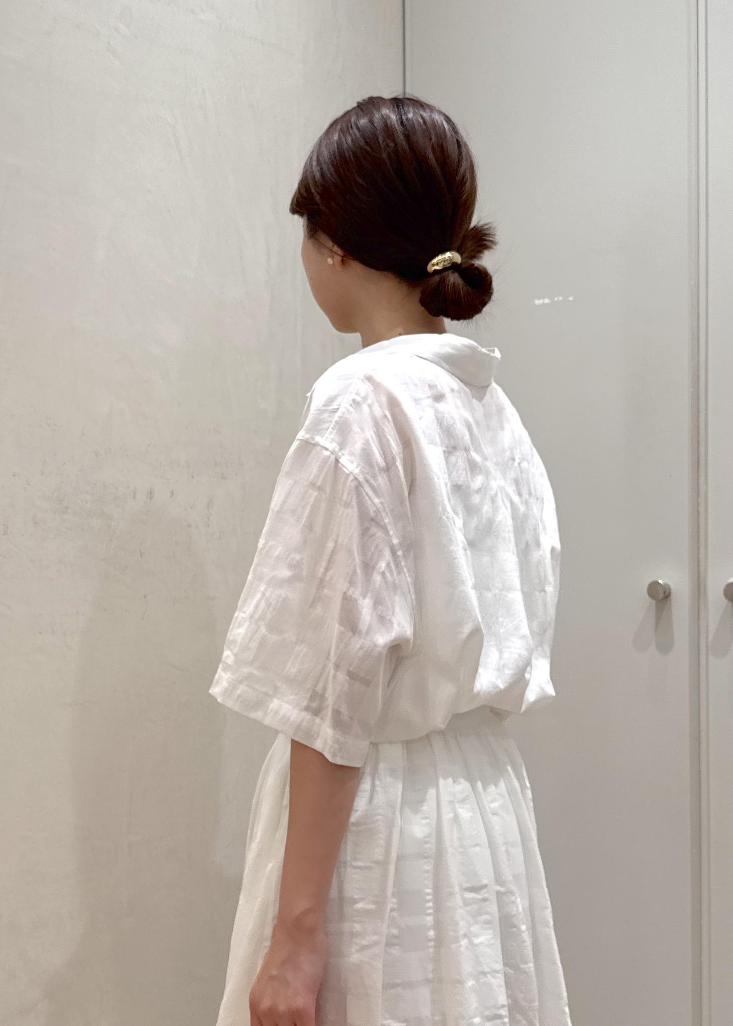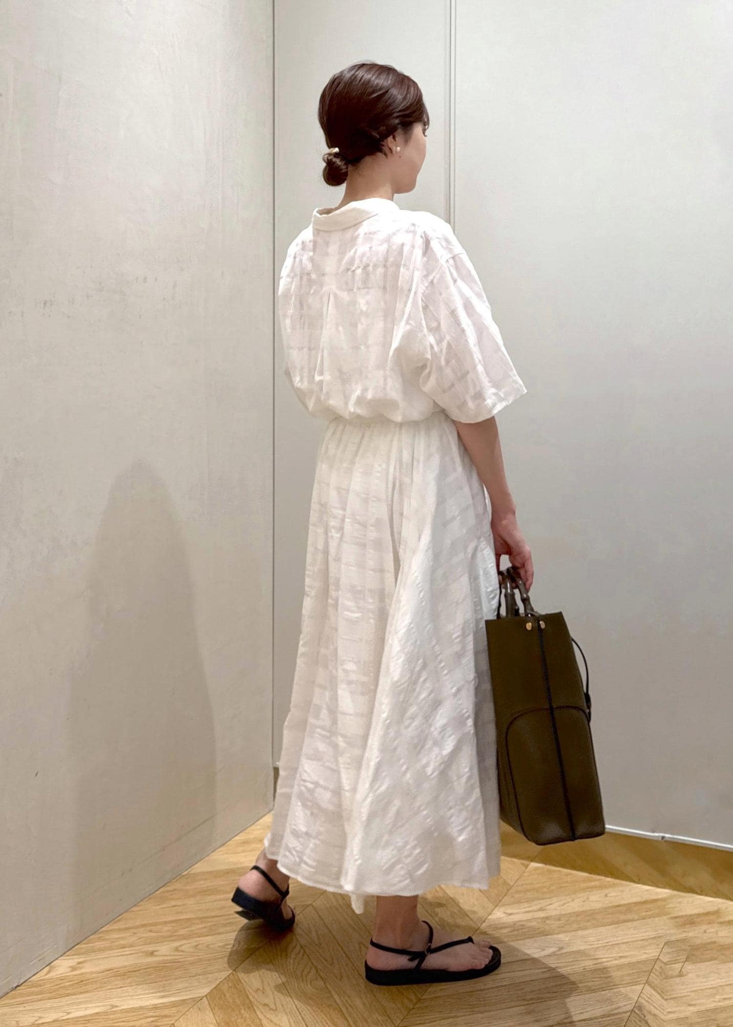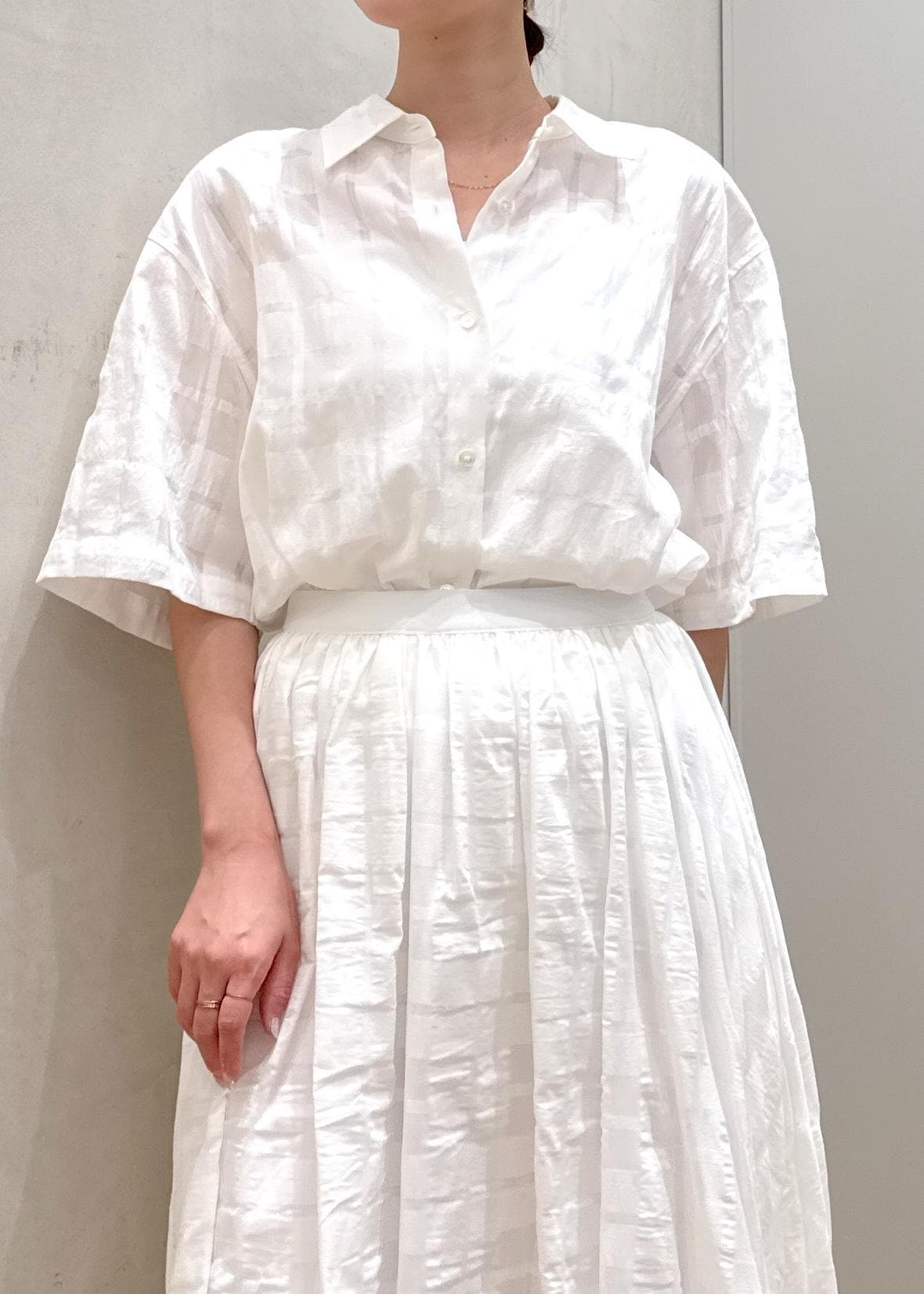 アウトレットROPÉ【洗える】シアーチェッククロップド5分袖シャツ/セットアップ対応ホワイト / F¥16,500レビューシアー感のある軽やかな素材。