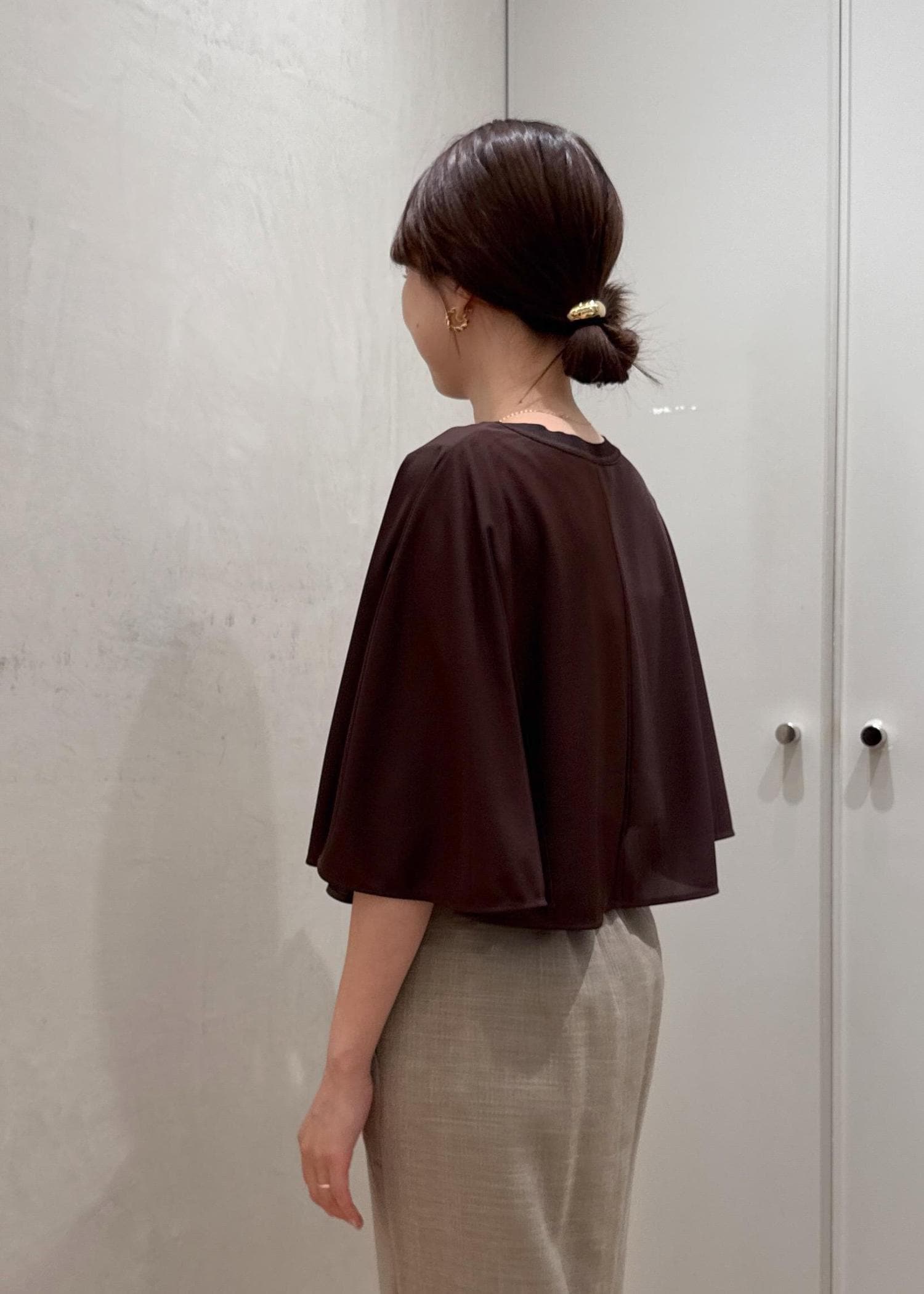 ROPÉ【洗える】ケープスリーブ リンキングブラウスダークブラウン / F¥13,200レビュー薄手でシアー感のあるシワになりにくい素材。