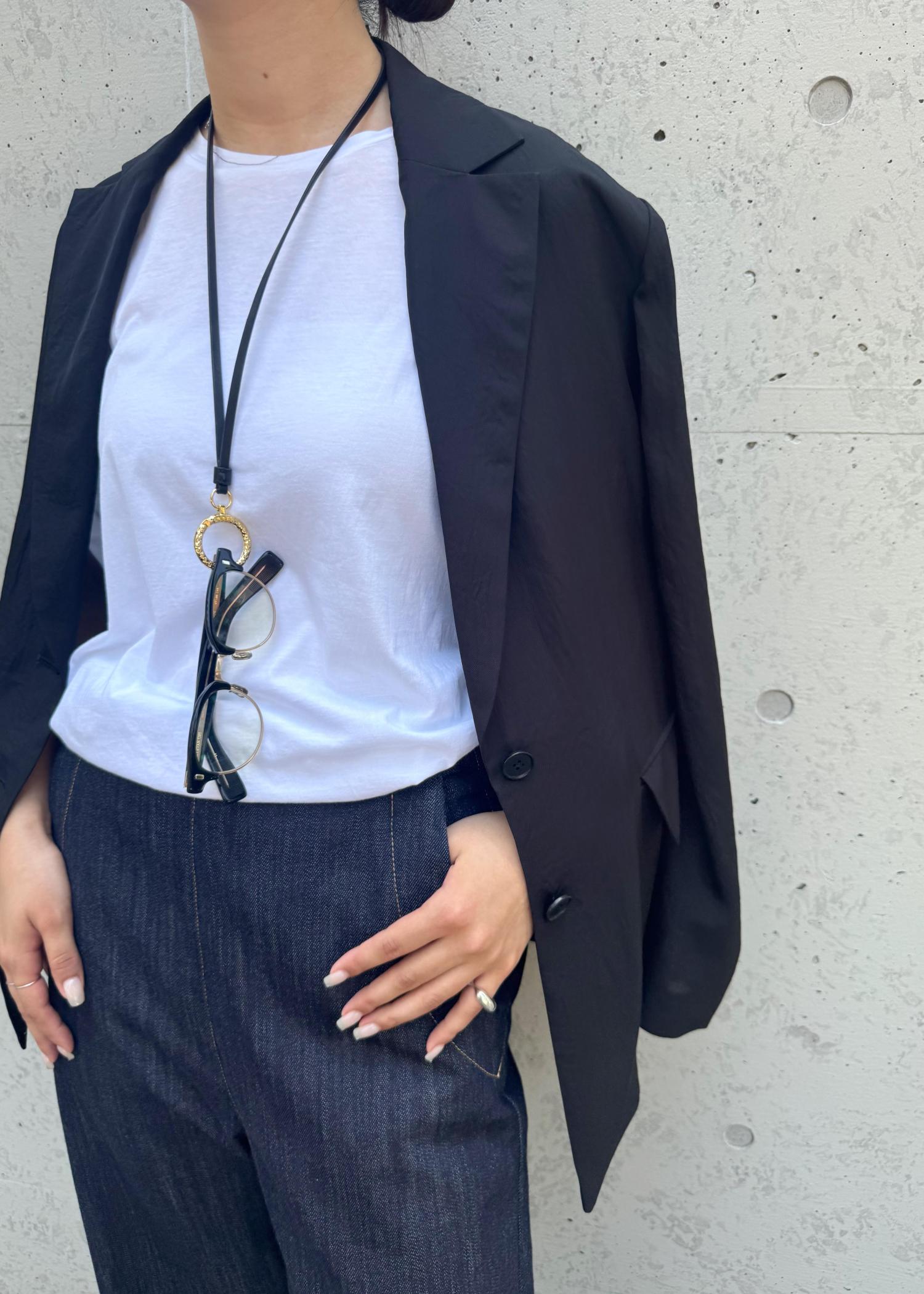 コーデのアクセントになるメガネなどをホルダーに下げるだけで