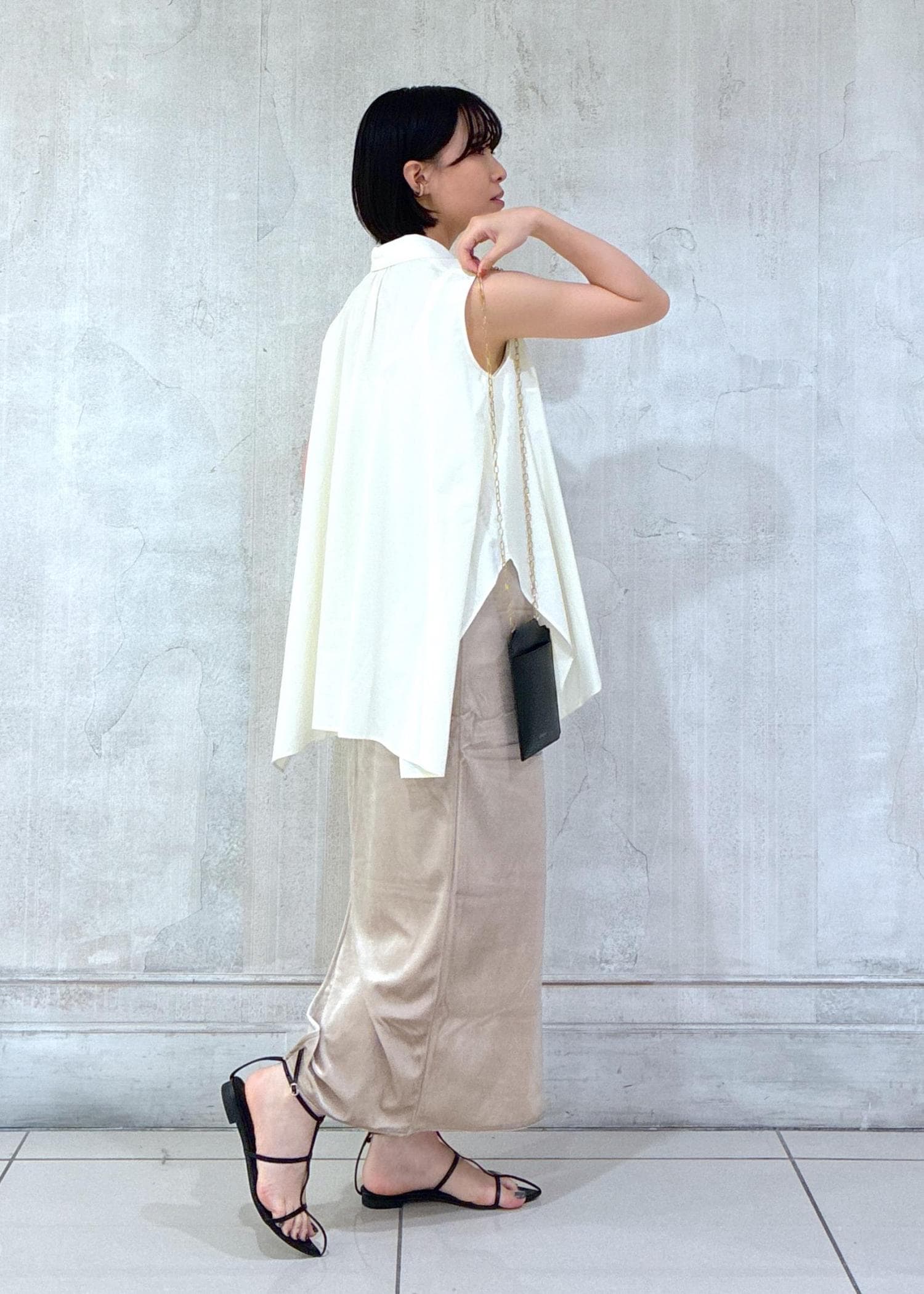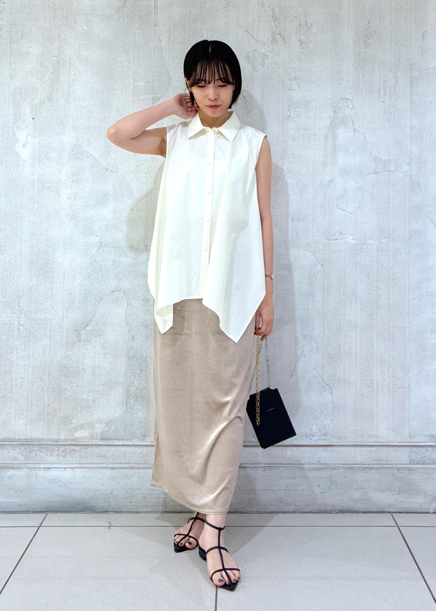 SALON adam et ropé近江晒タイプライターノースリーブシャツオフホワイト / F¥7,920レビュードラマチックに広がるドレープ感が特徴のノースリーブブラウスです。