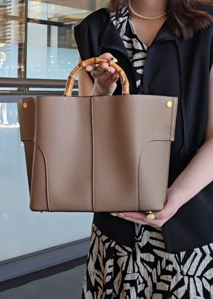 ROPÉ【E'POR】BAMBOO BAG Medium【超軽量】【25AW】ベージュ系 / F¥18,700レビュー普段のお手荷物(ミニ財布、ハンカチ、スマホ、カギ、リップ等)に加えて小さめの折り畳み傘や500ミリのペットボトルも入るサイズ感です。