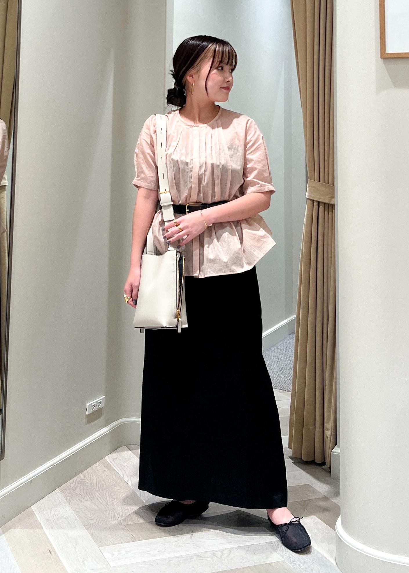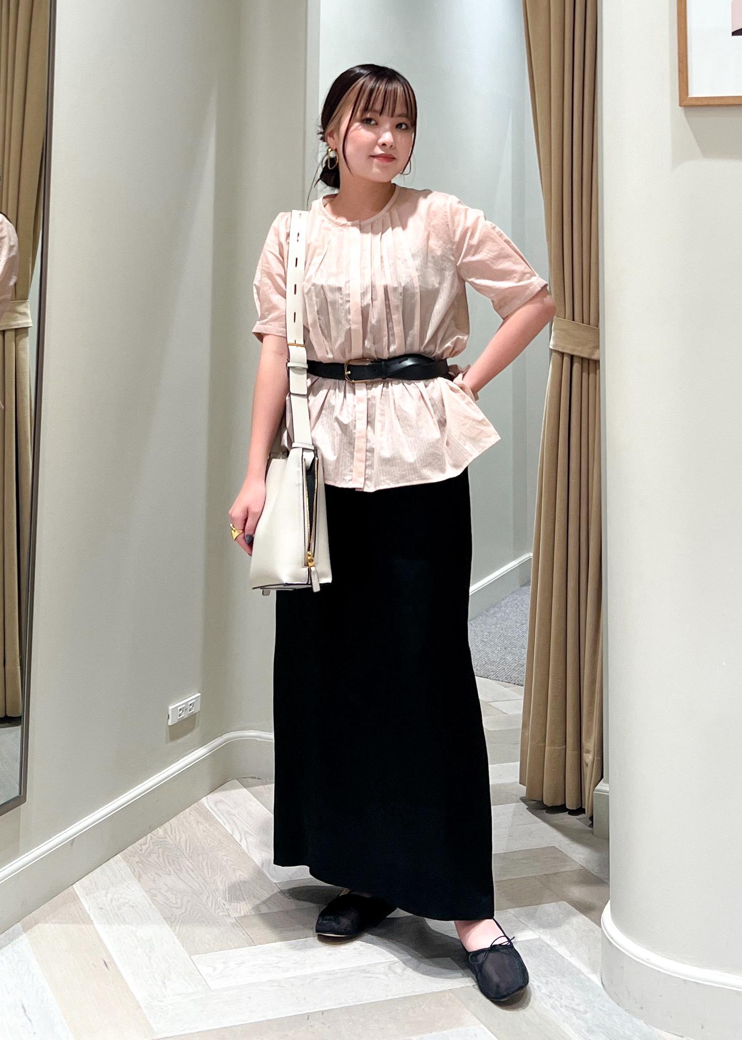 ピンクブラウス×アイラインスカート