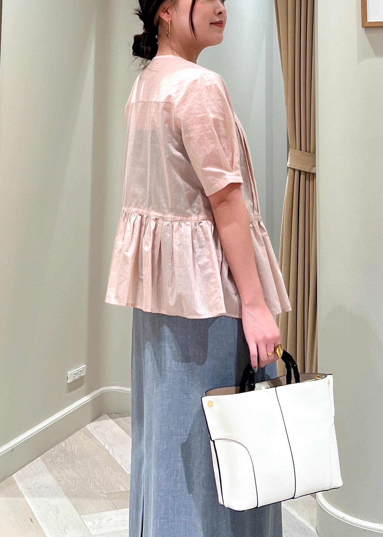 アウトレットROPÉ【洗える】ストライプペプラムブラウスピンク / F¥8,800レビューゆったり身幅に余裕がありますが