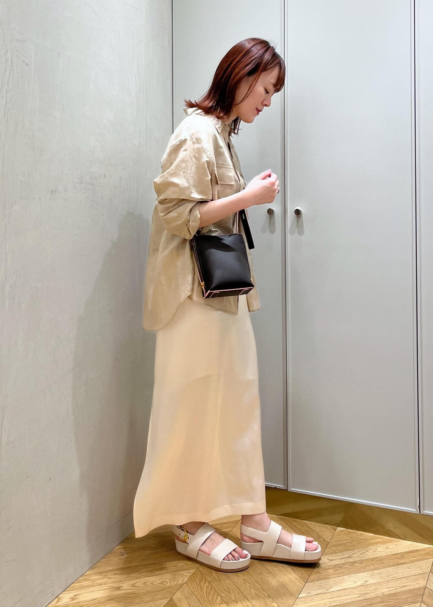 Iラインシルエットで、ヒップ、越しのシルエットを拾いにくいですが、すっきりとした印象で履くことができます。
