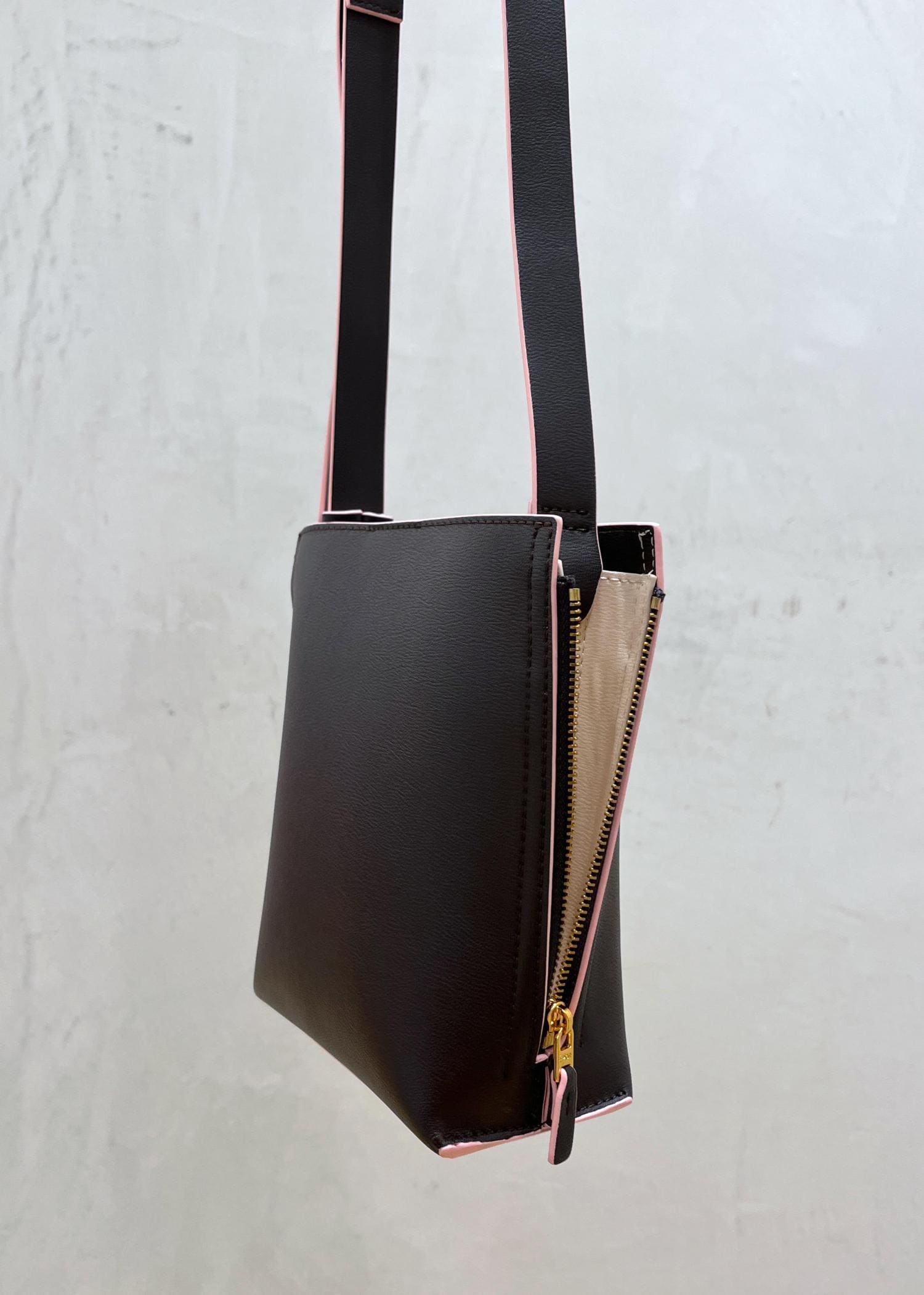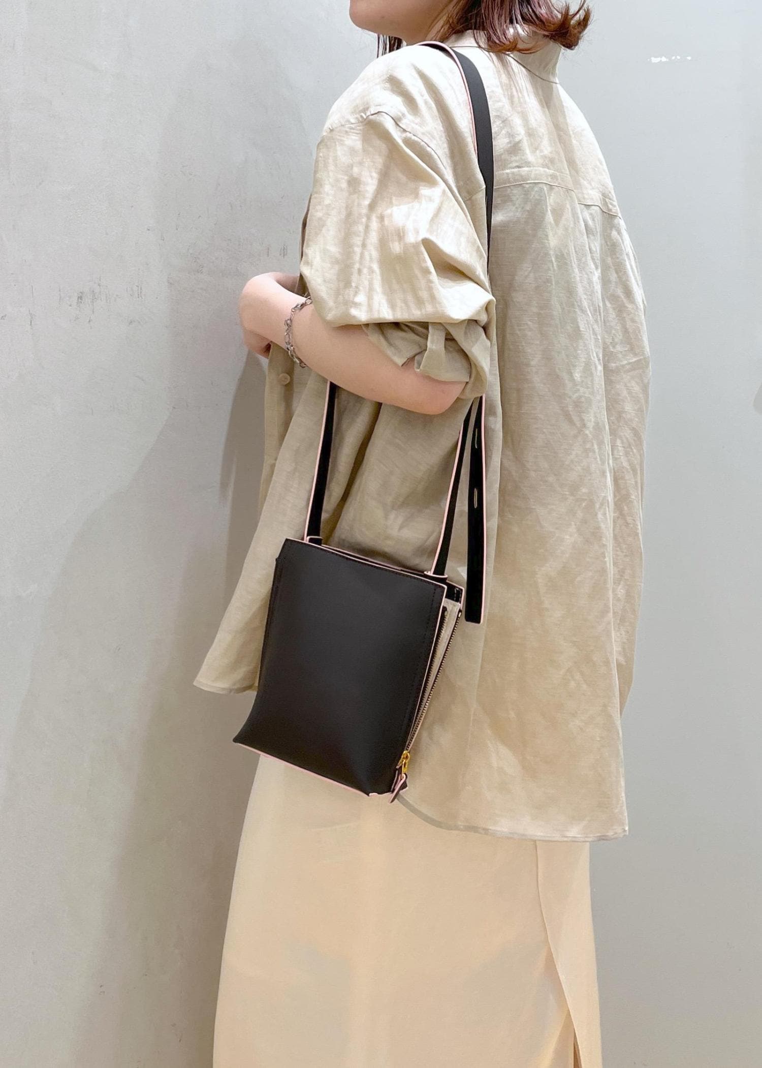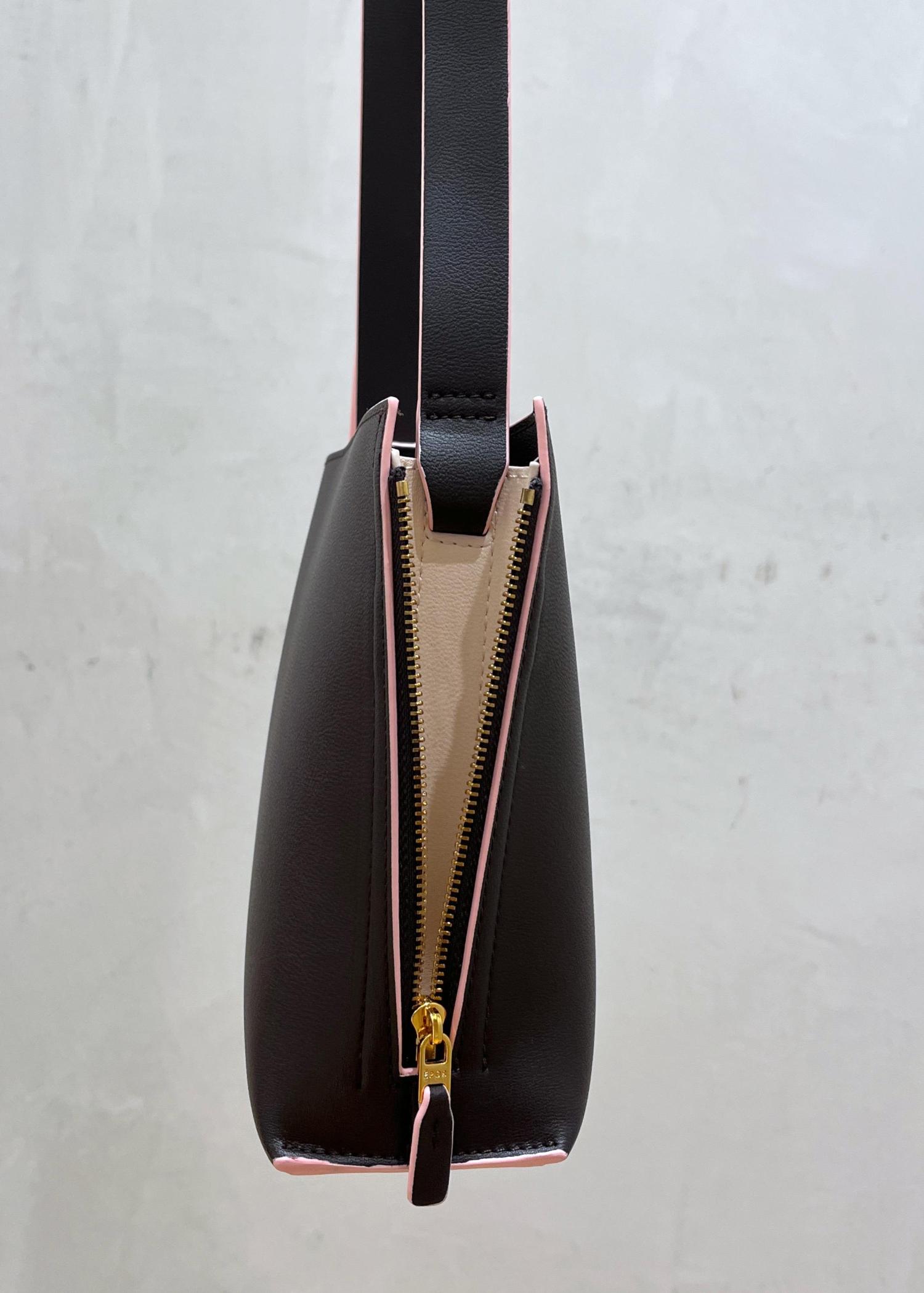 大人ピンクがさりげなくアクセントになり、シンプルなお洋服にも映えるミニバッグです。
