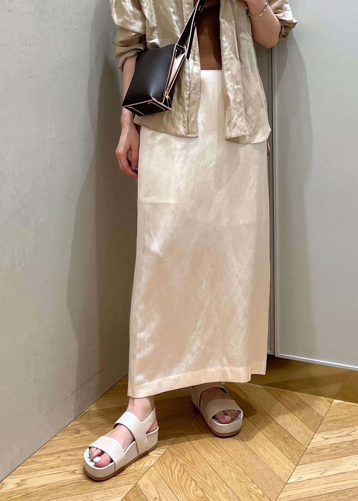 アウトレットROPÉアセテートリネンバッククロススカート/洗えるオフホワイト / 38¥11,550レビュー身長165cm 38サイズ着用