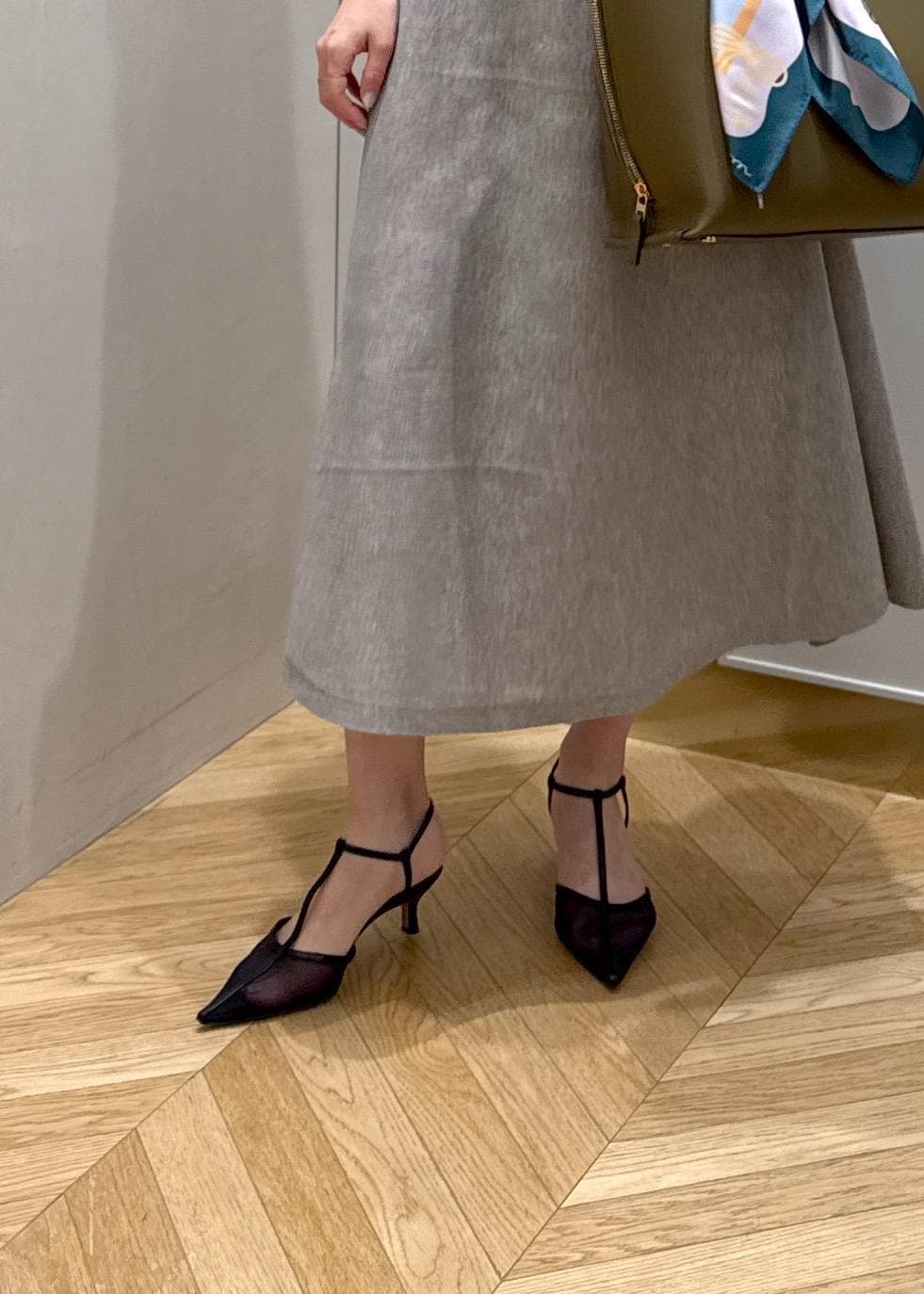 つま先はシアーなナイロンチュール素材で透け感があり、上品でこなれた印象に。