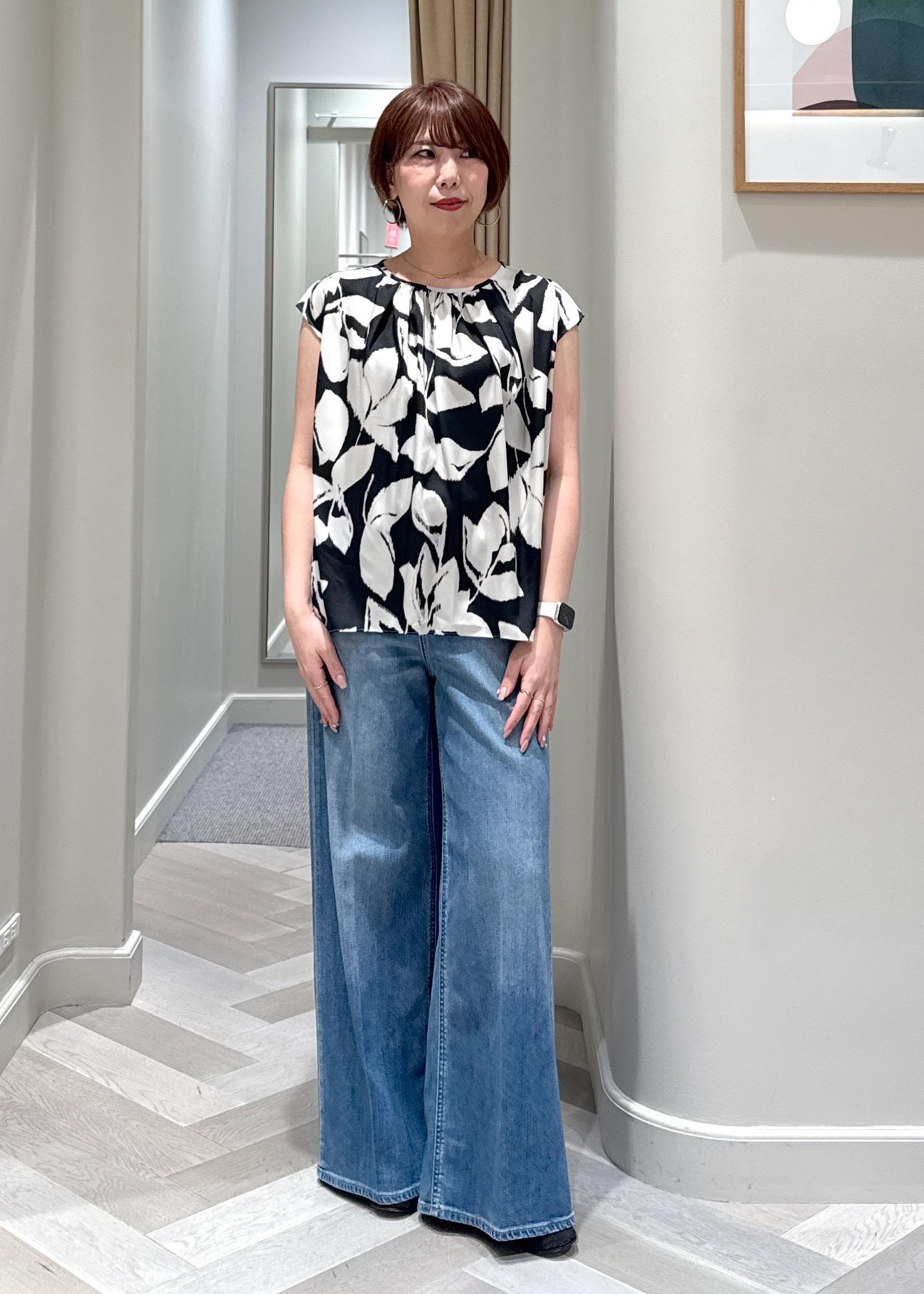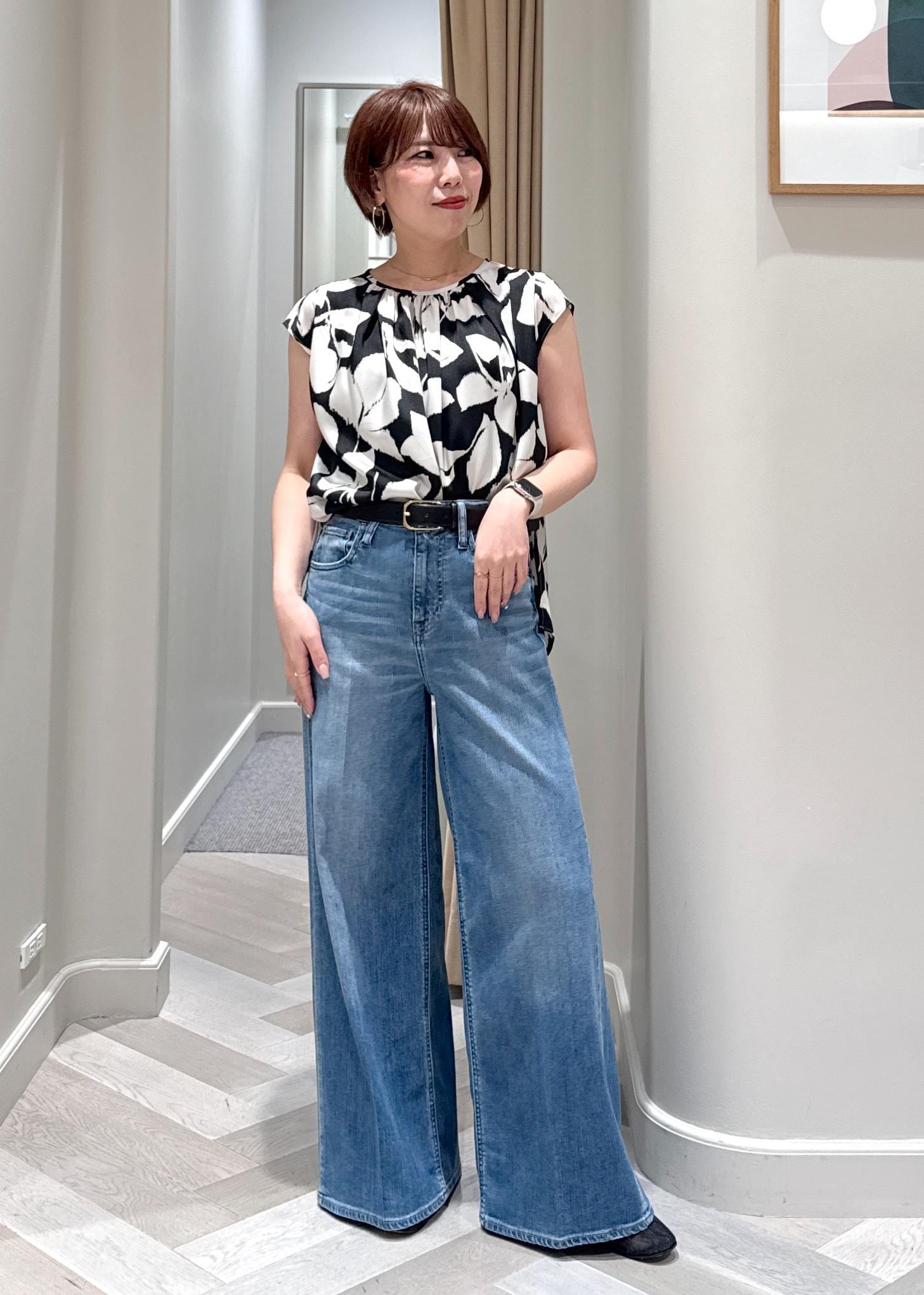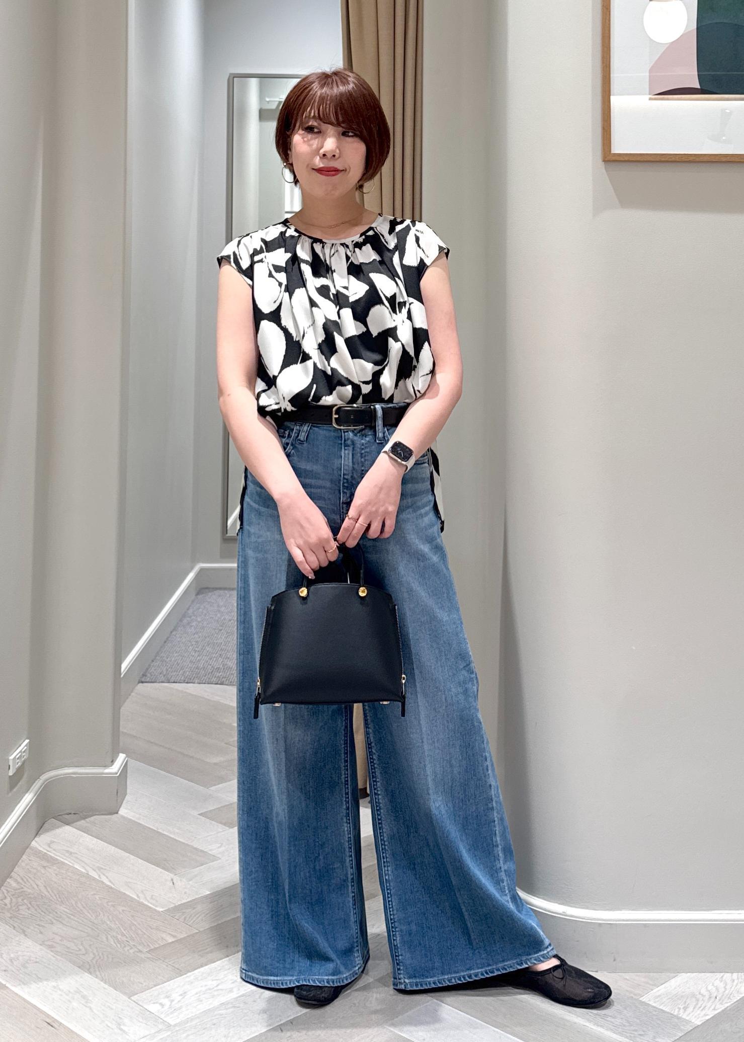 きれいめなブラウスに店頭でも人気のヘルシーデニムを合わせたきれいめカジュアルコーデです♫