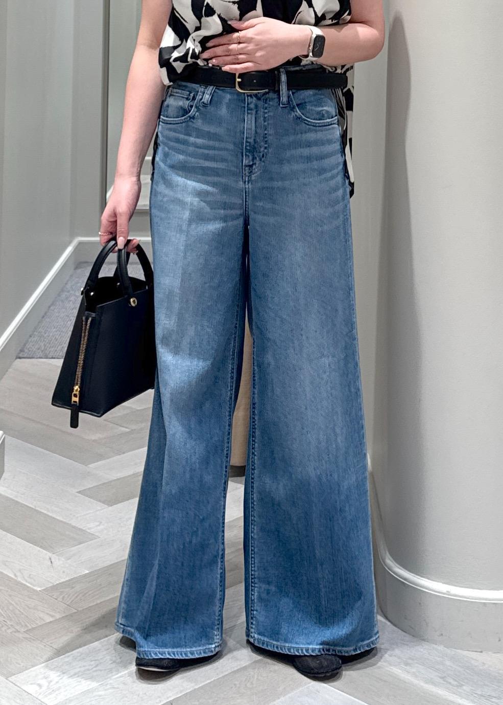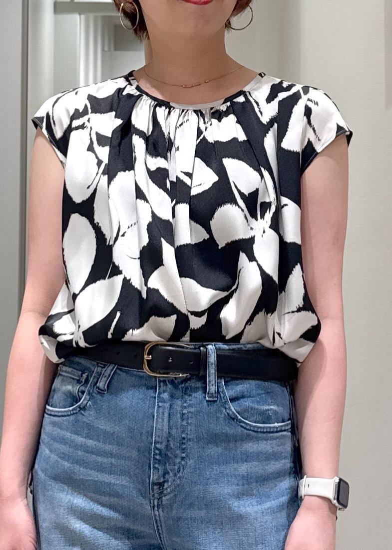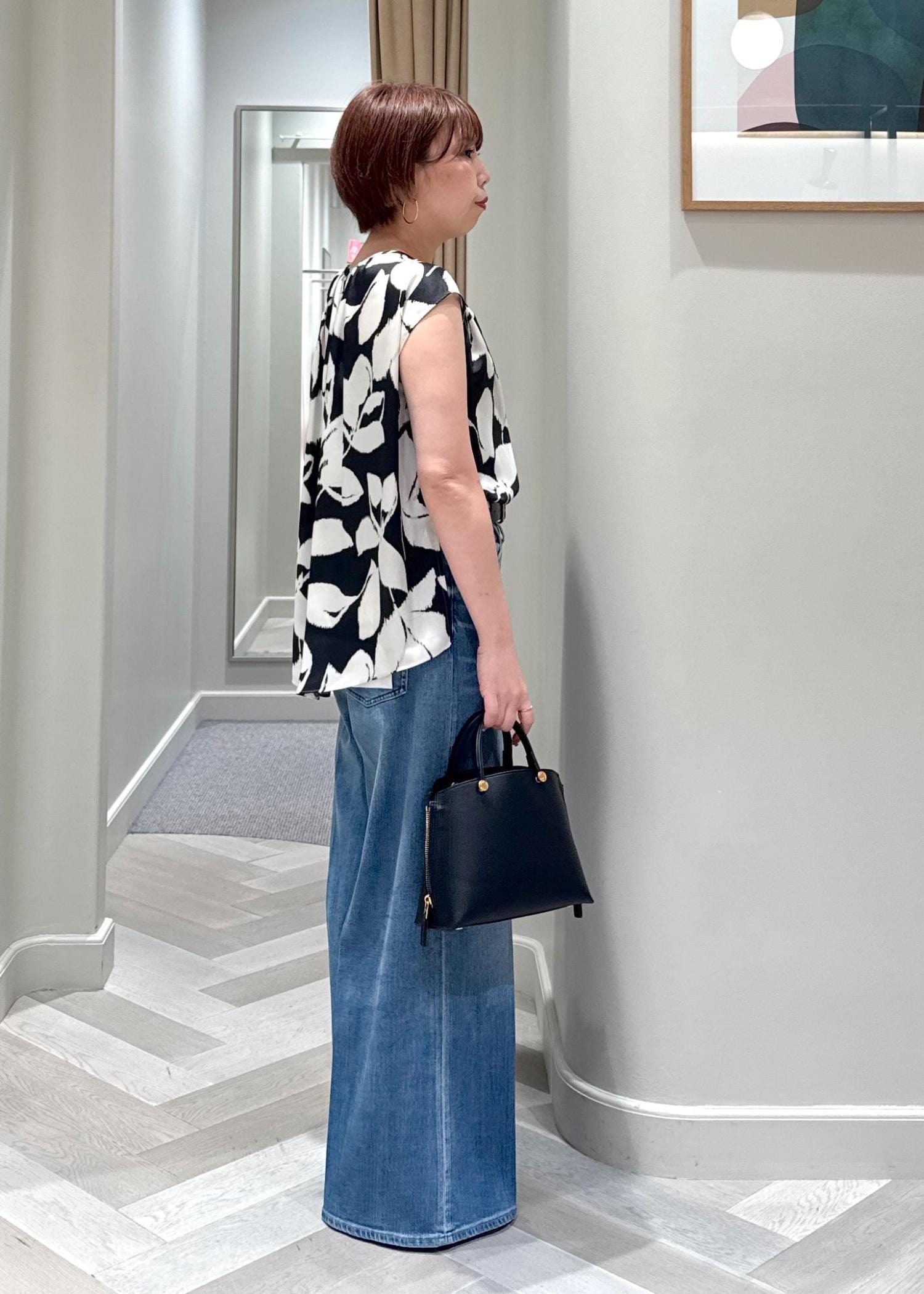 きれいめなブラウスに店頭でも人気のヘルシーデニムを合わせたきれいめカジュアルコーデです♫