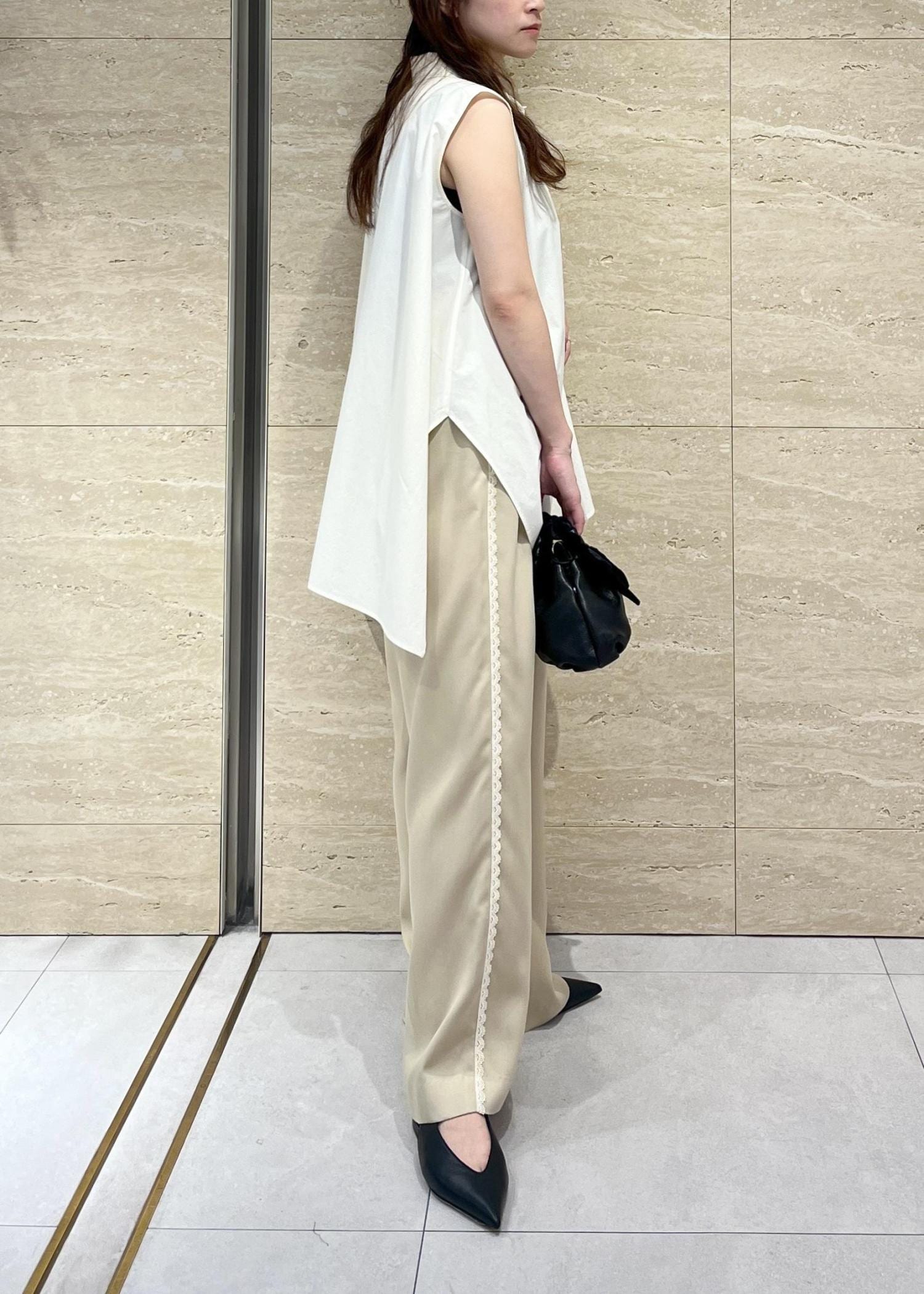 カジュアルなイージーパンツですが、サイドのレースデザインで女性らしく合わせていただけます! -