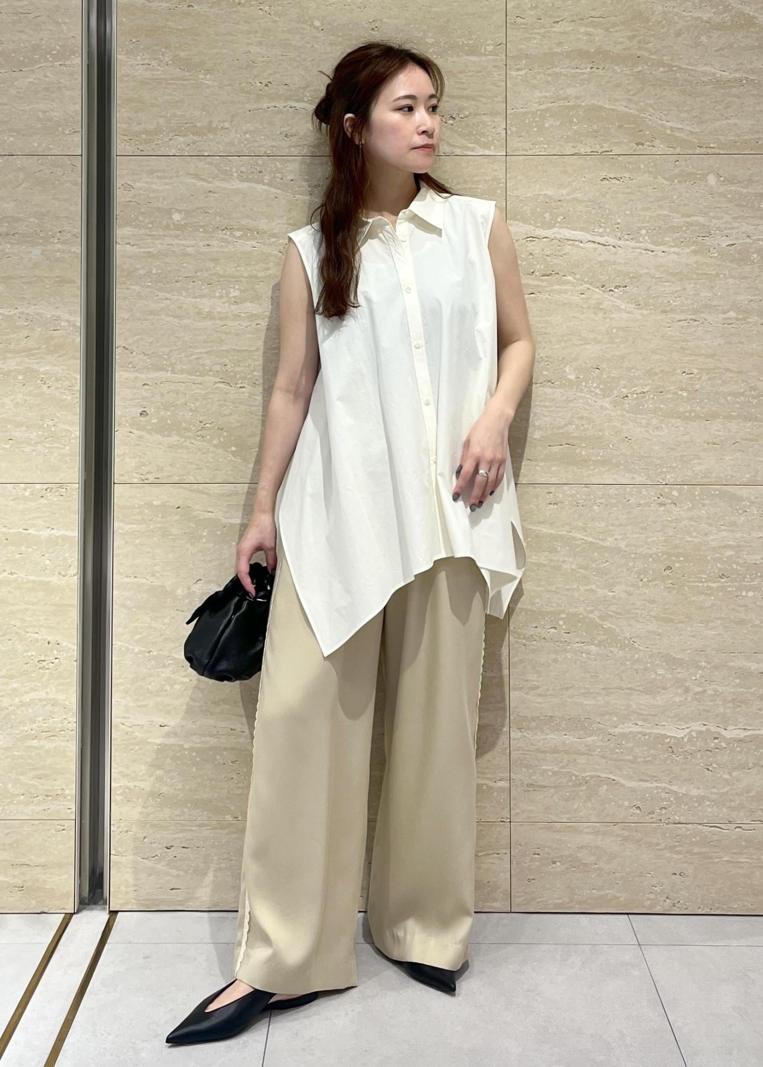 SALON adam et ropé近江晒タイプライターノースリーブシャツオフホワイト / F¥7,920レビュー着丈はヒップがしっかり隠れる長めデザインです。