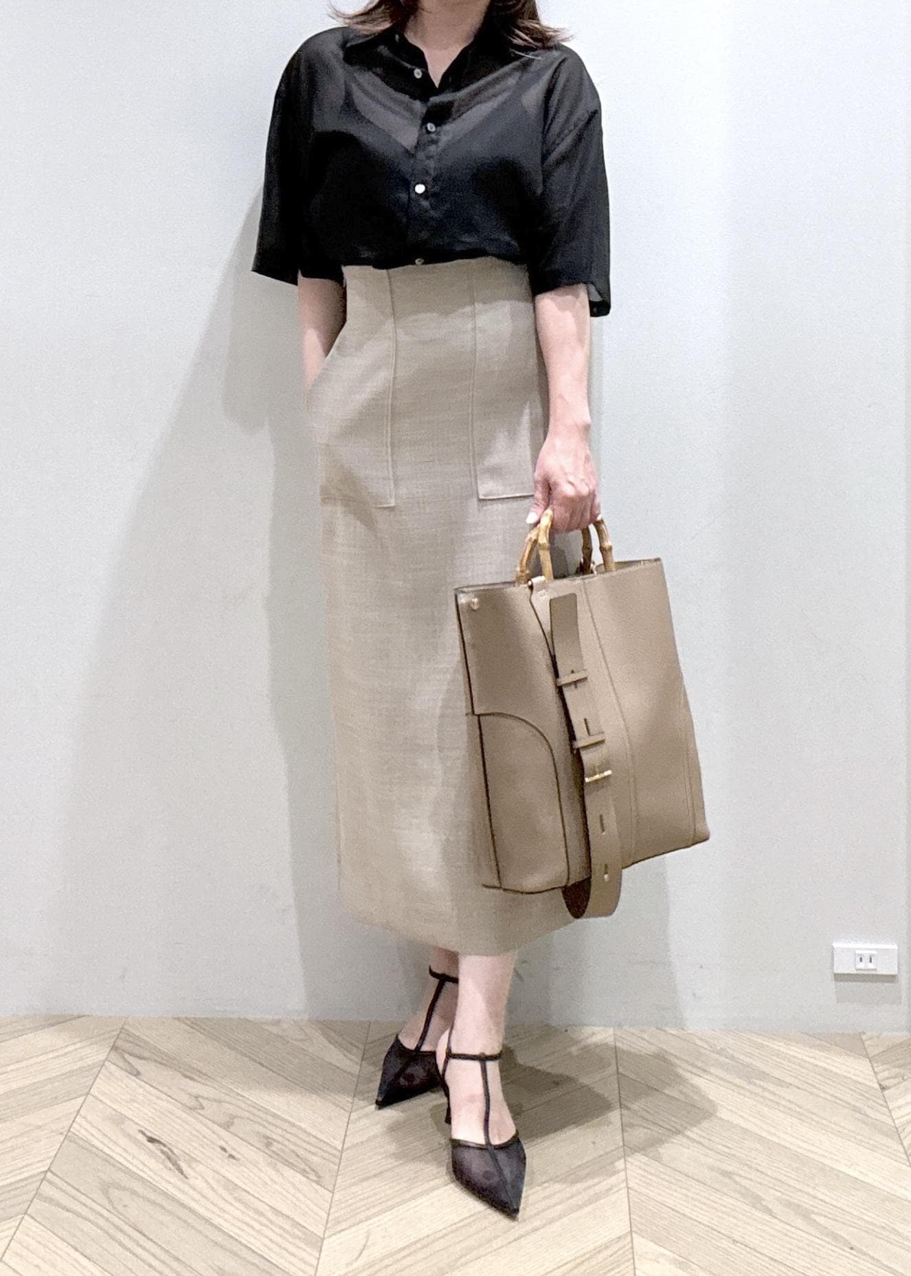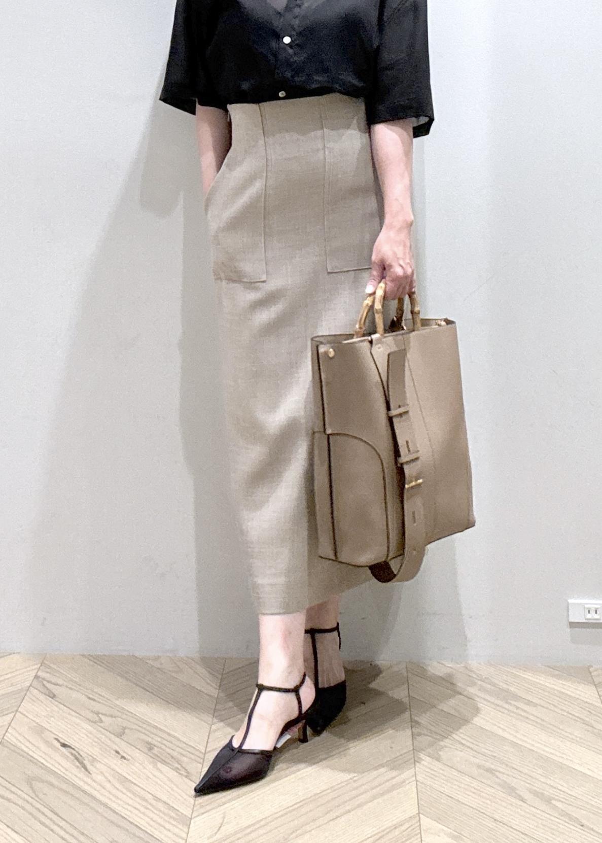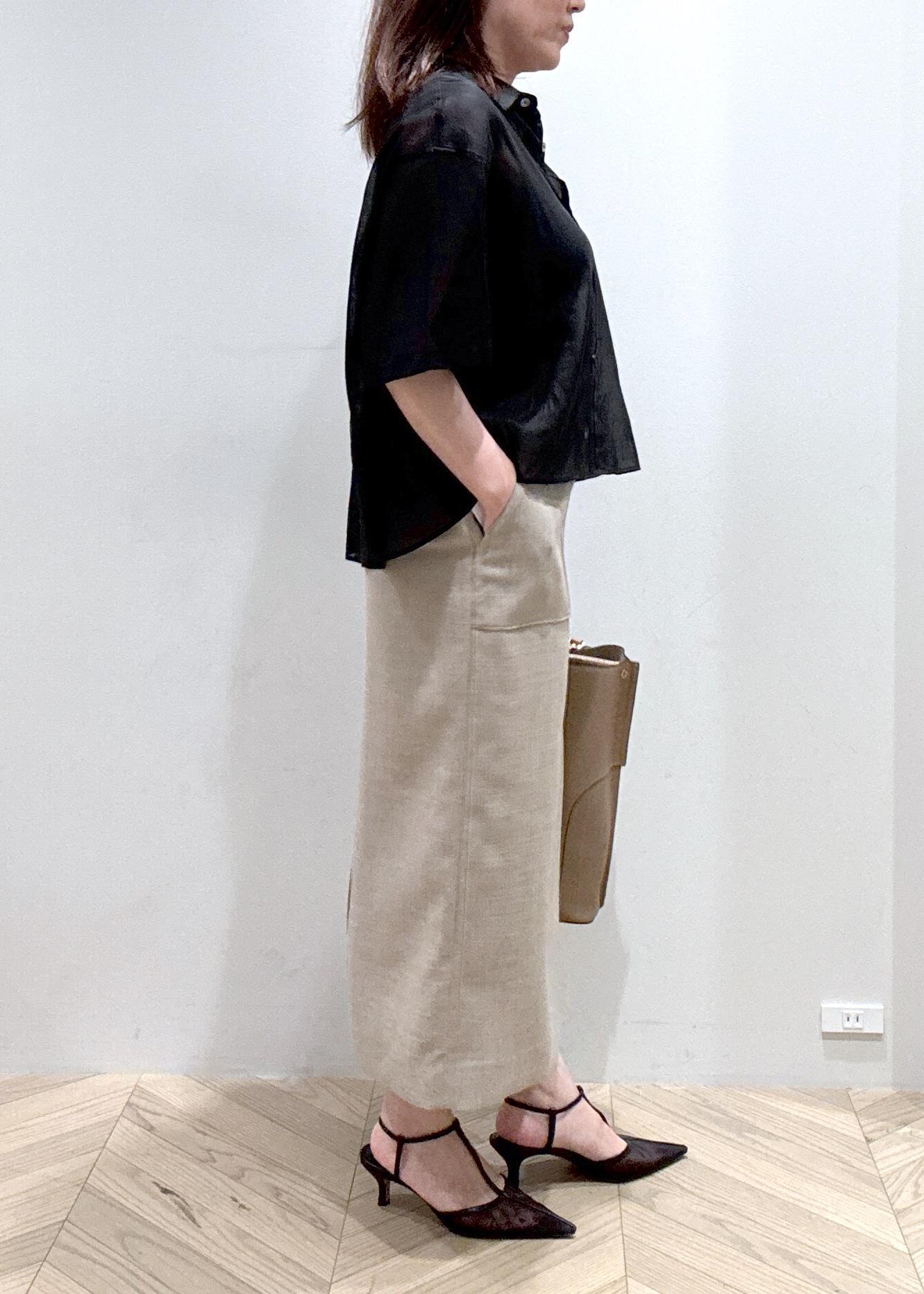 ROPÉリネンライク ポケット付きタイトスカート/イージーケアベージュ / 38¥20,900レビュー158cm38サイズ着用。