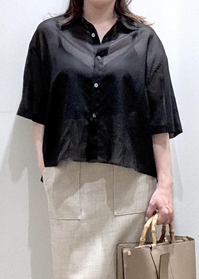 アウトレットROPÉ【洗える】コットンシアークロップドシャツブラック / F¥9,350レビューウエストにかかるくらいの短め丈で肌離れのあるゆったりとしたシルエットです。