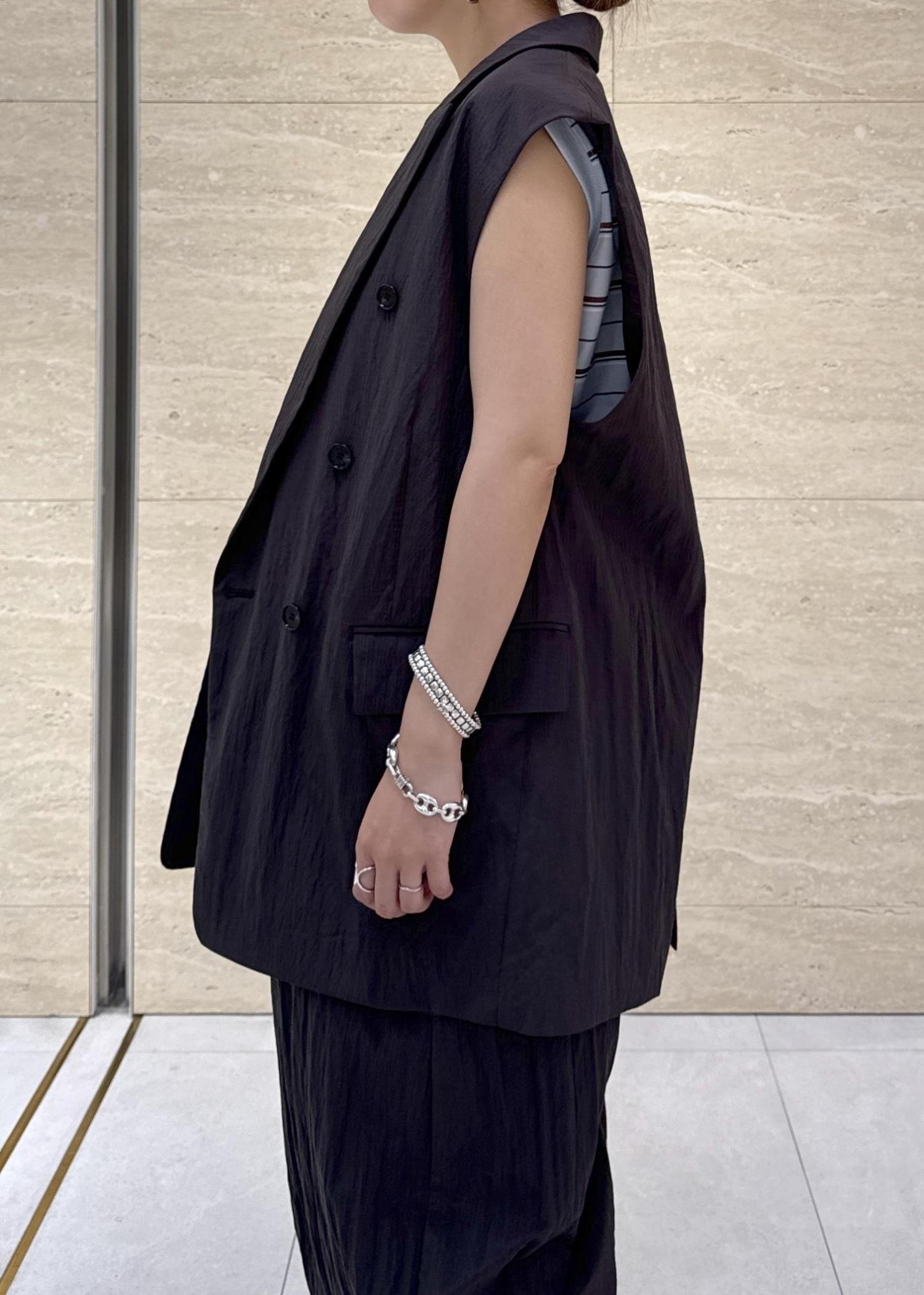 ドライタッチで、軽い素材感なので長い季節着用しやすいです。