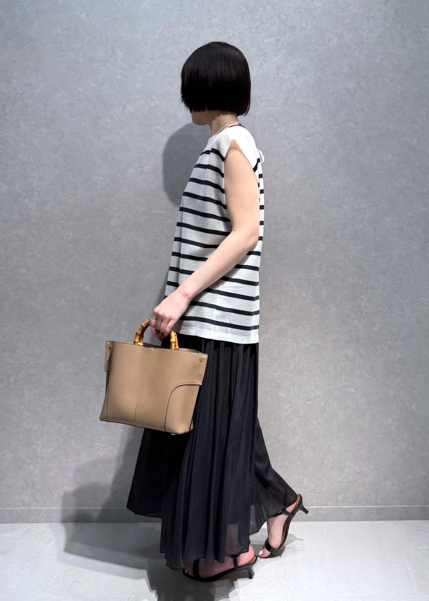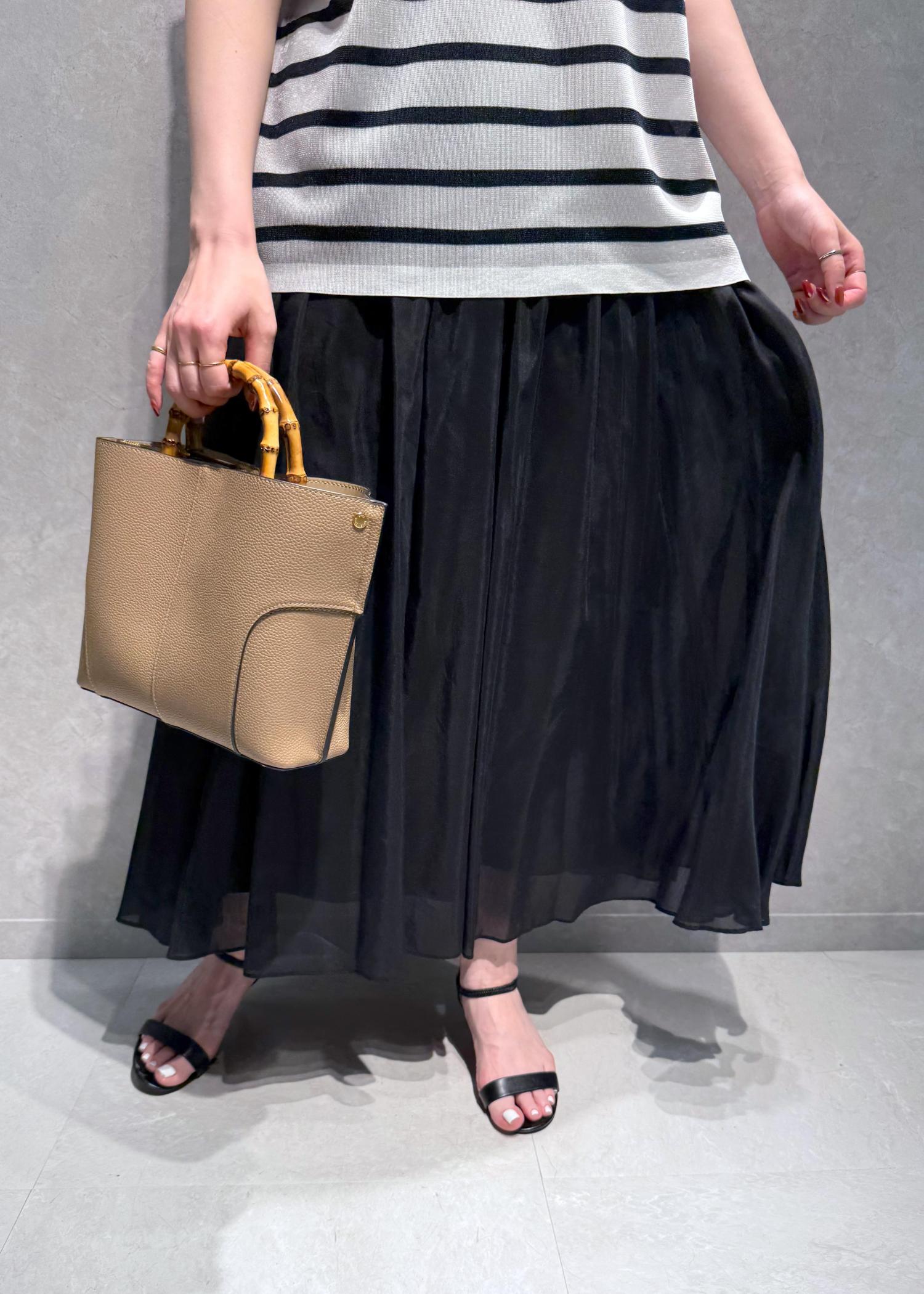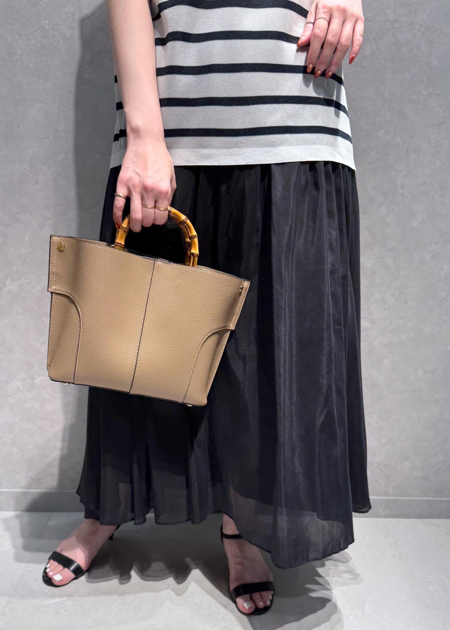 ROPÉ【E'POR】BAMBOO BAG Medium【超軽量】【25AW】ベージュ系 / F¥18,700レビューA4サイズは入りません。ミニボトルや長財布は入れることが可能です。日傘も折り畳みのコンパクトな物は入れていただけます。重たさもなくストレスなく持てます。
