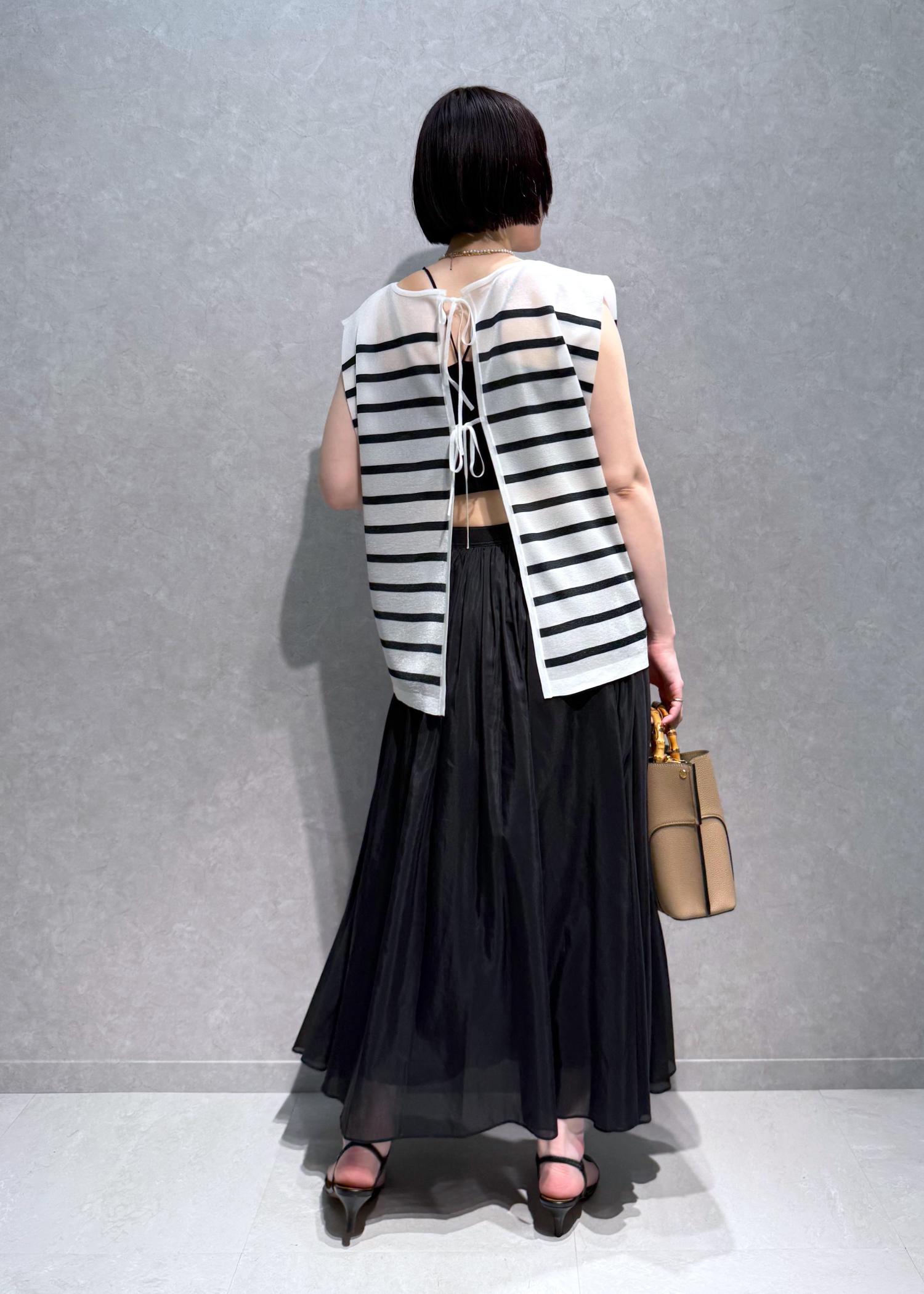 アウトレットROPÉ【洗える】コットンシルクスカートブラック / F¥11,000レビュー普段38サイズを着用します。こちらはウエストがゴムでゆったりめです。腰位置で止まる感じです。