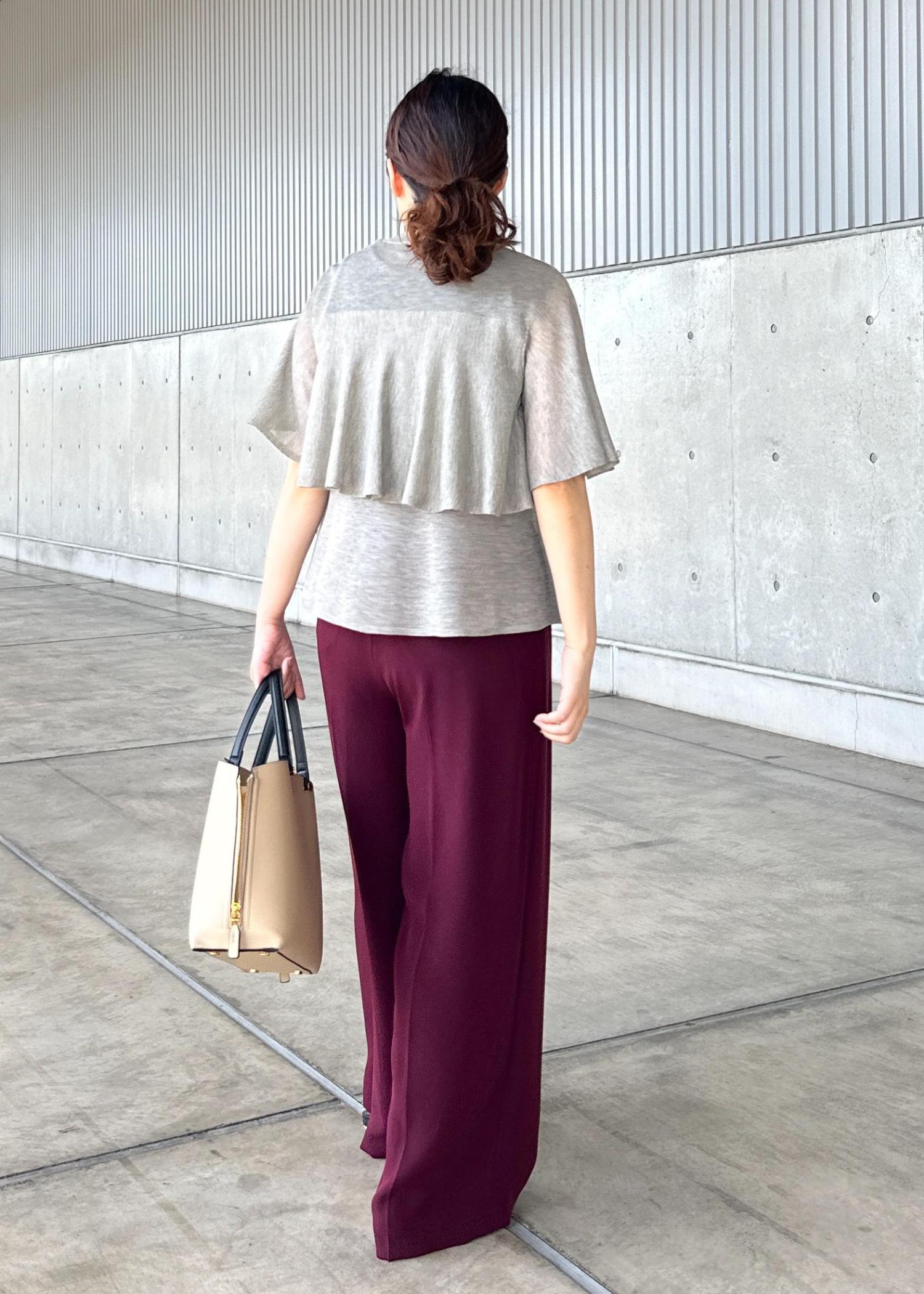 ROPÉ【洗える・カセット服】ライトトリアセイージーワイドパンツ/お仕事・通勤・セットアップ対応ワイン / 38¥25,300レビュー身長161㎝で普段38サイズを着用。