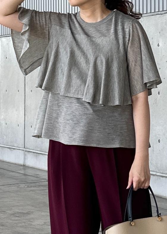 ニットですが、肌触りがサラッとしていて夏でも着やすいです。程よくシアー感もあり肌離れしてくれるシルエットなのでキレイ目でありながら程よくラフに着ることが出来ます。 -