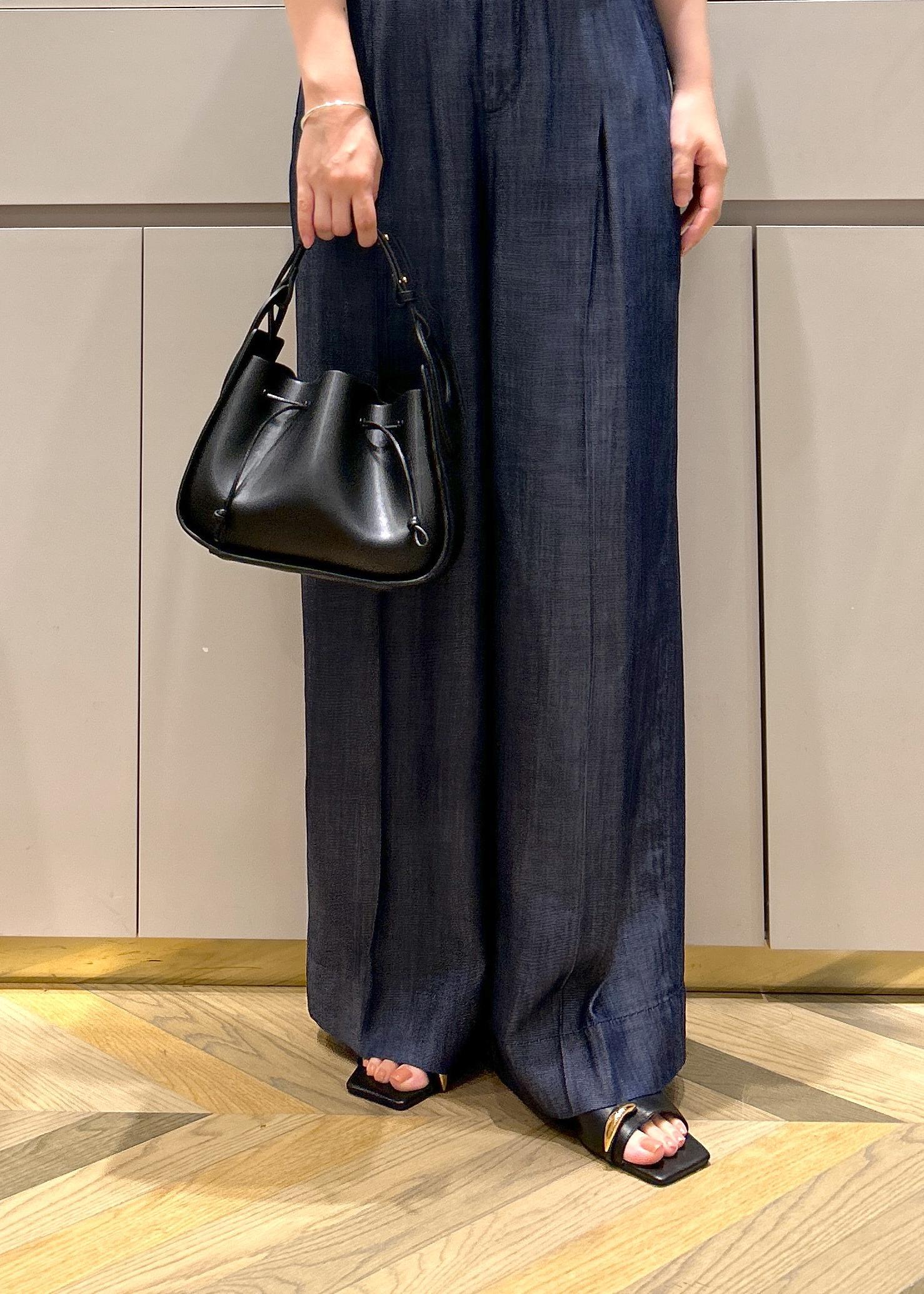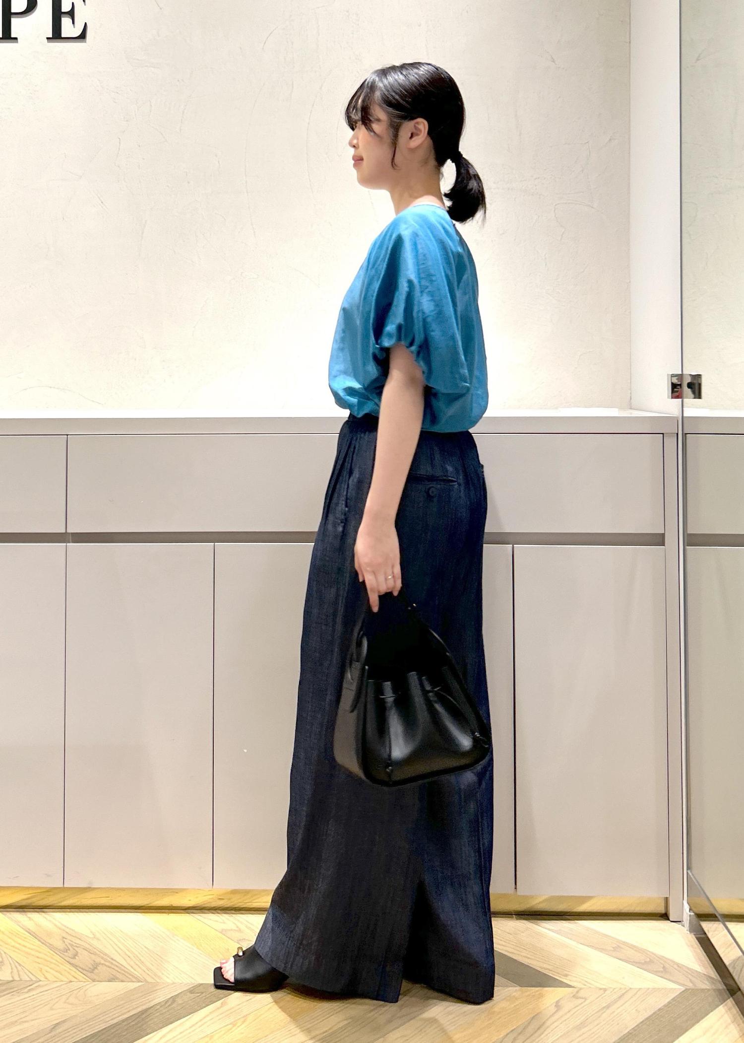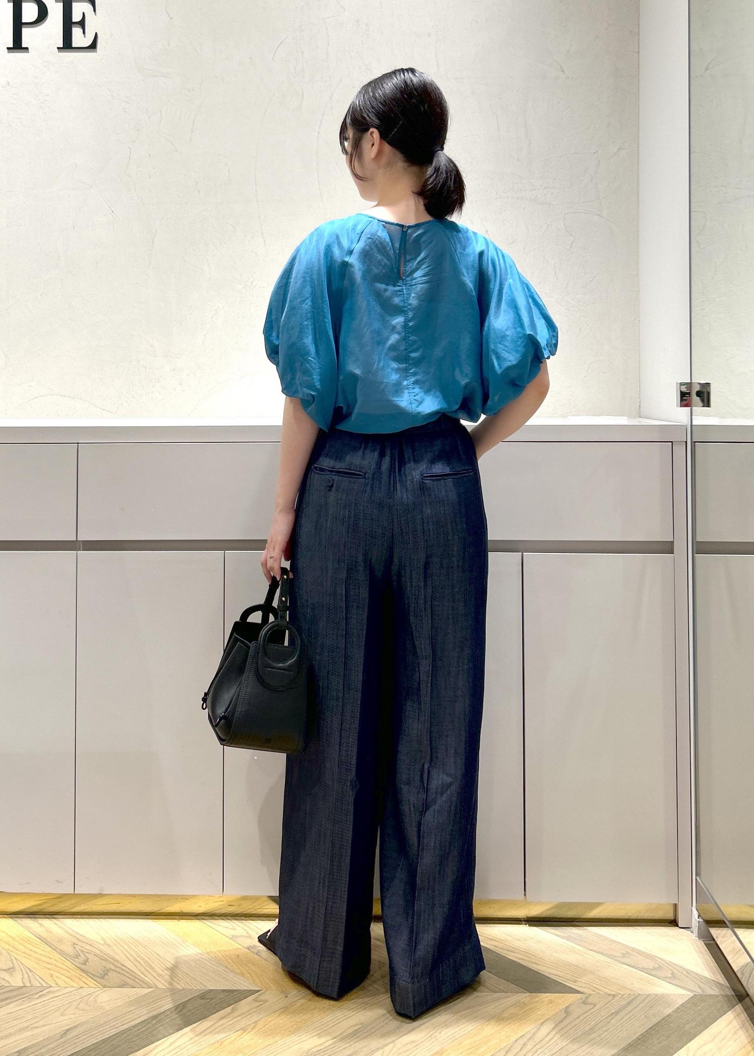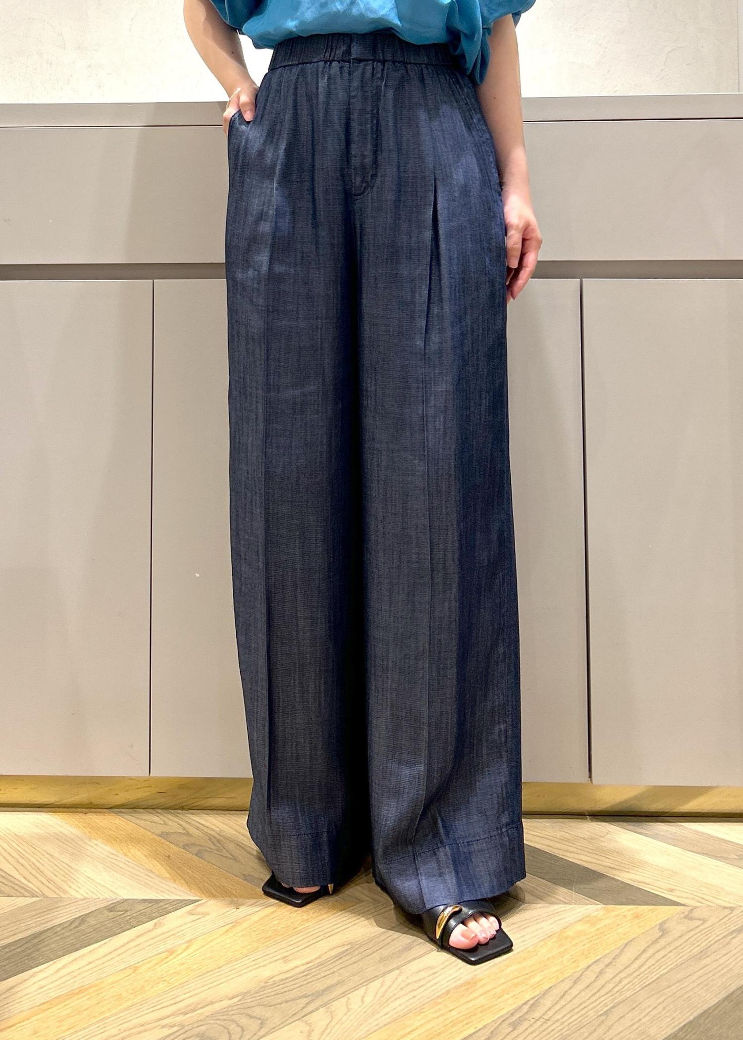 ROPÉ【洗える】テンセルデニムイージーパンツブルー / 36¥27,500レビュー丈はフラットシューズだと、私の身長で床につくくらいでした。素材は落ち感があるので腰回りからストンと落ちるシルエットです。サラッとしていて清涼感がある素材です。