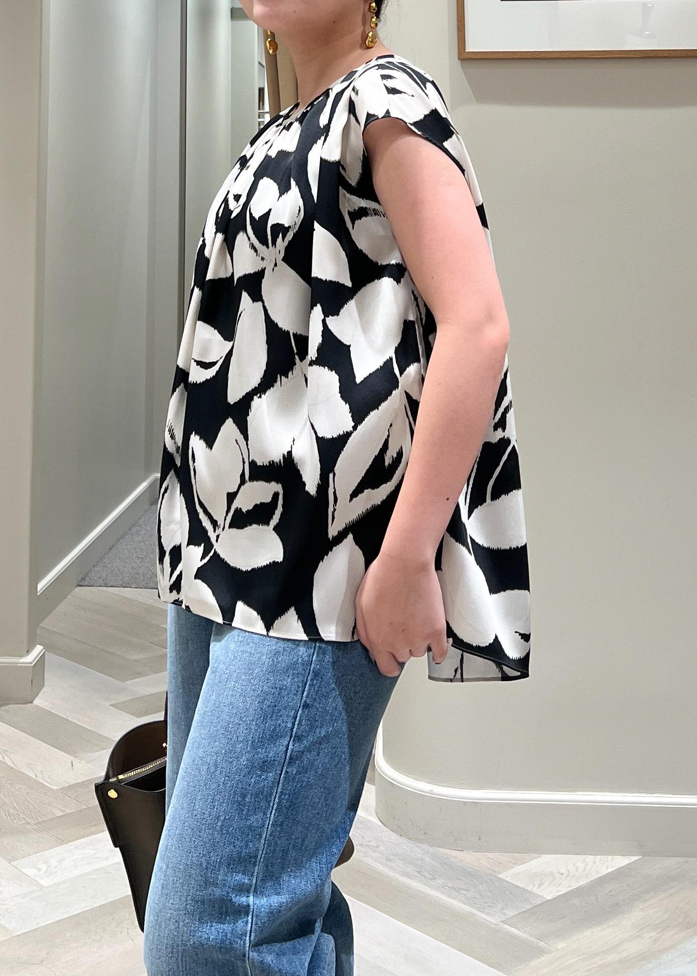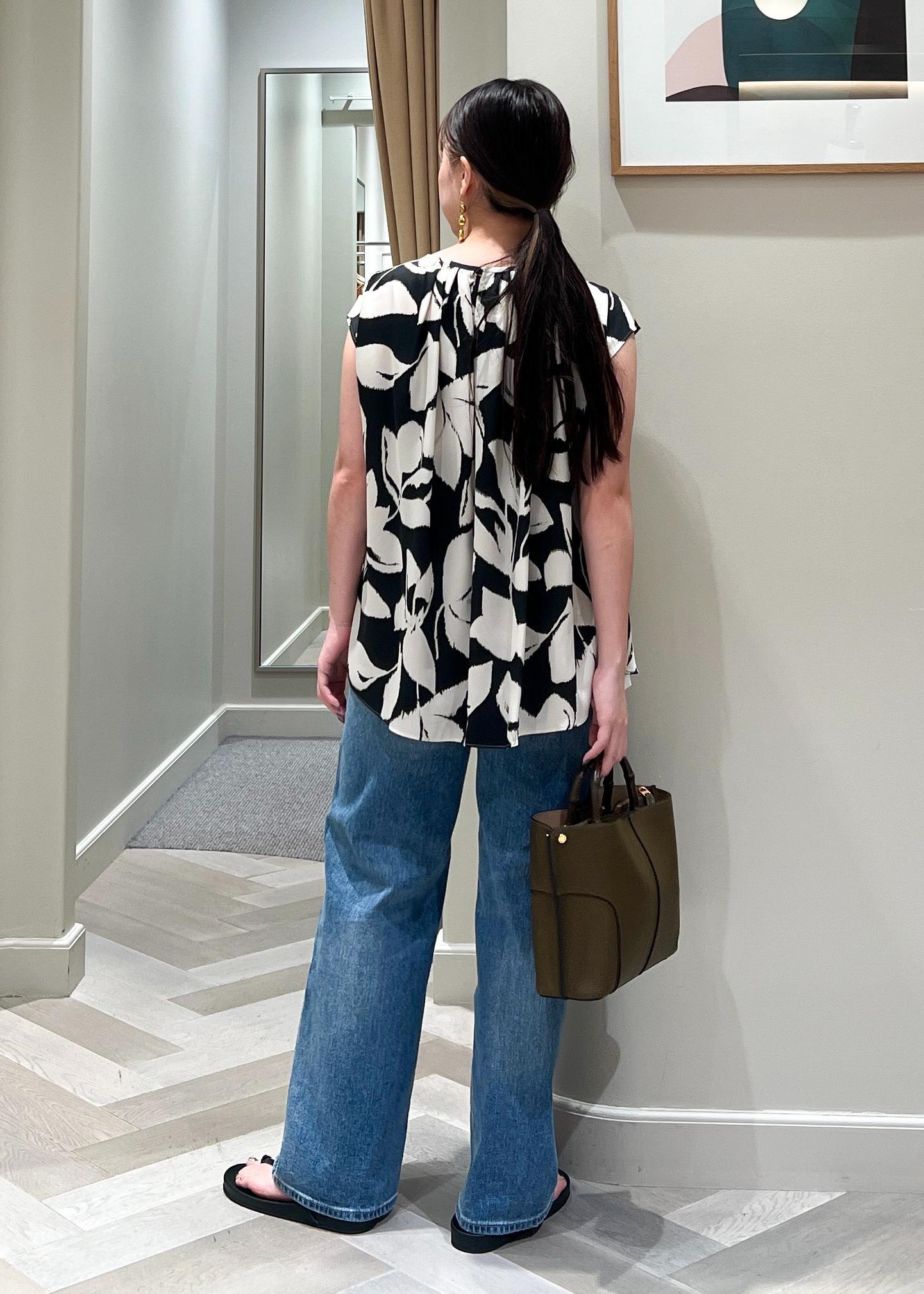 アウトレットROPÉDEVEAUXジオメトリックフラワーブラウスブラック / F¥11,550レビューフレンチスリーブで二の腕カバー○