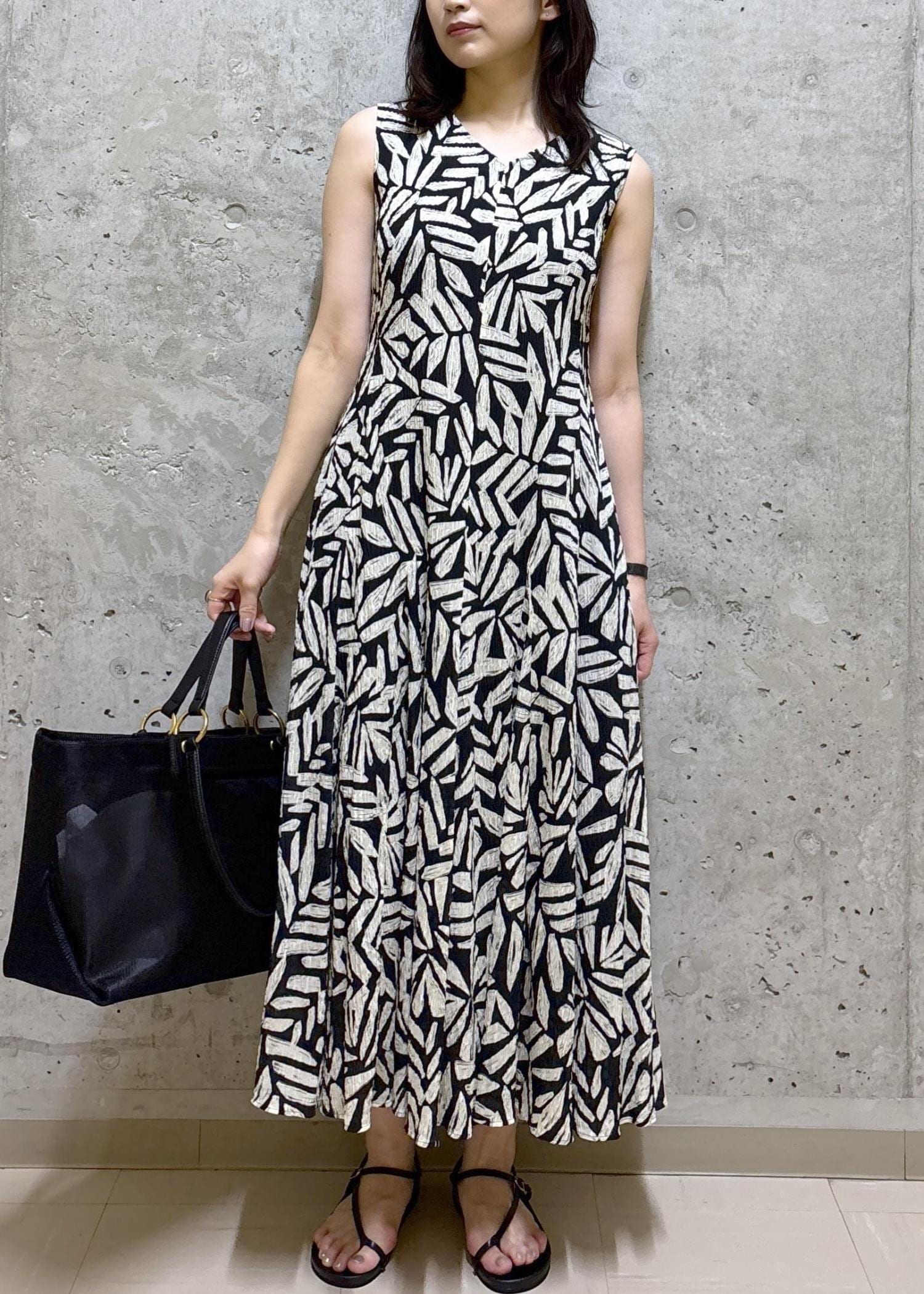 目を引くDEVEAUXの幾何学柄ワンピース。