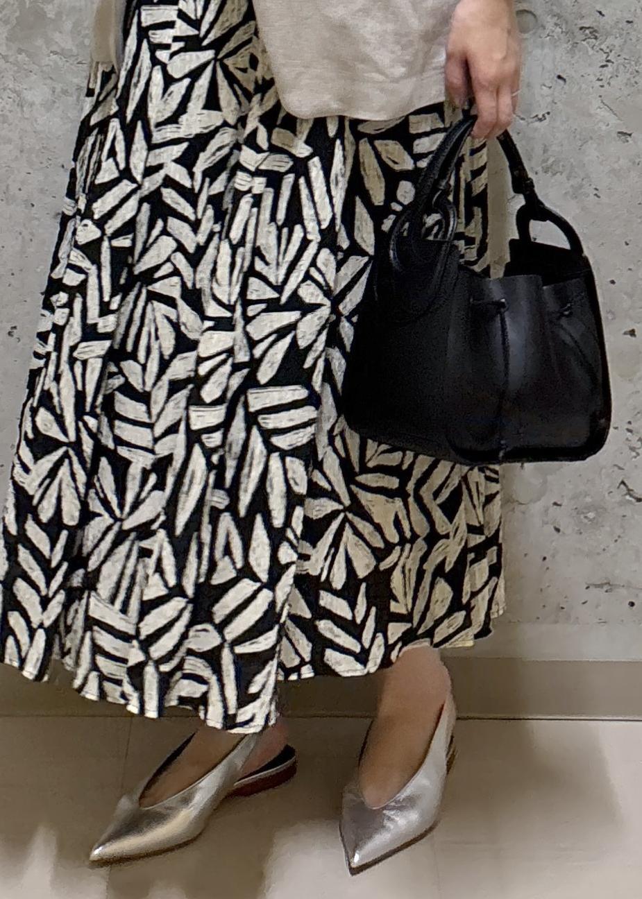 すっきりした上半身から、分量感たっぷりのフレアが綺麗なシルエットになっています。