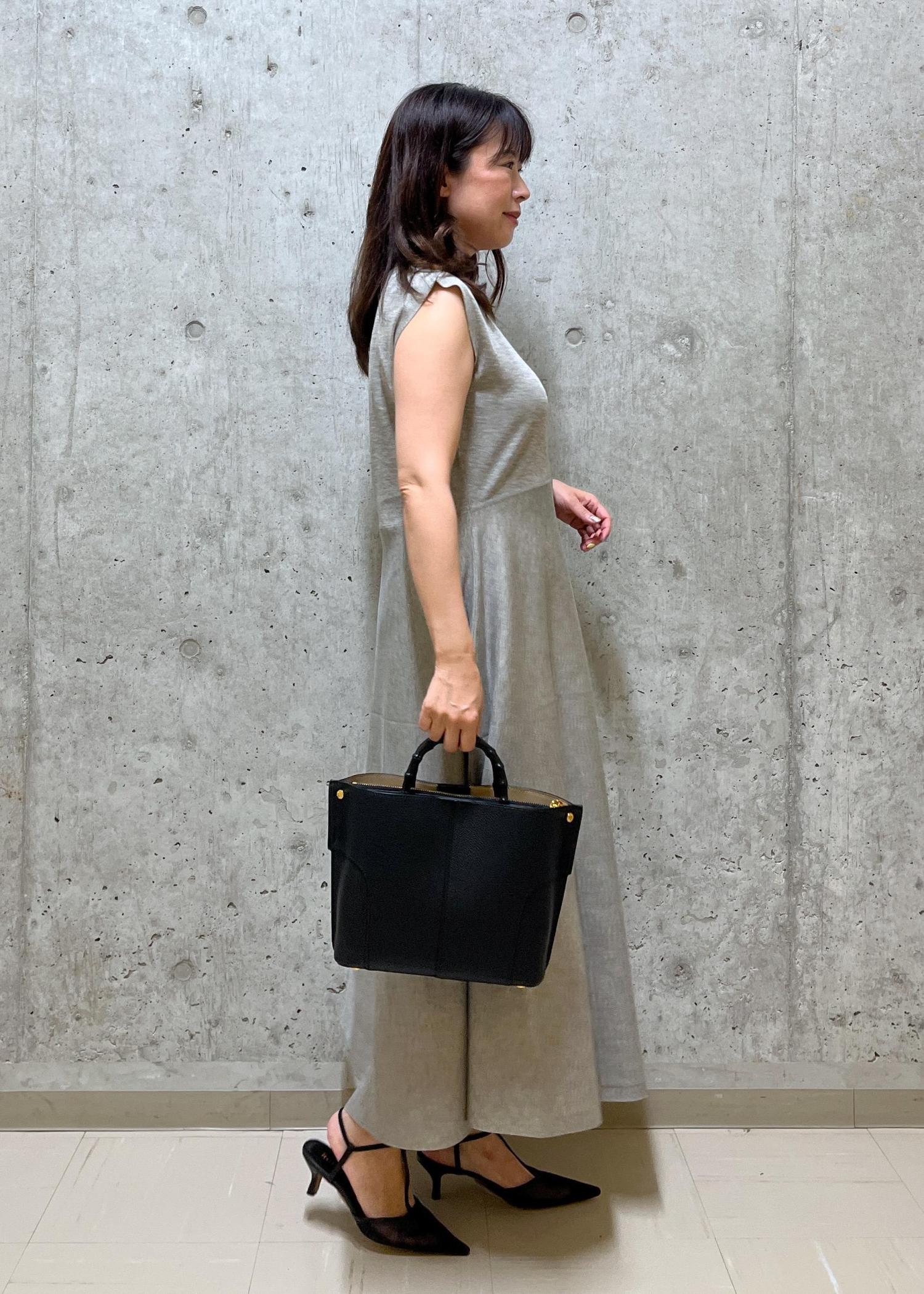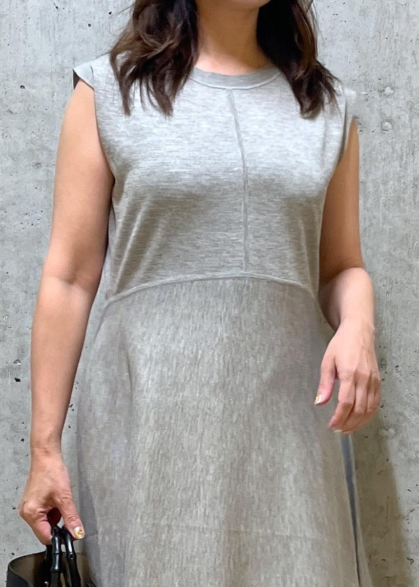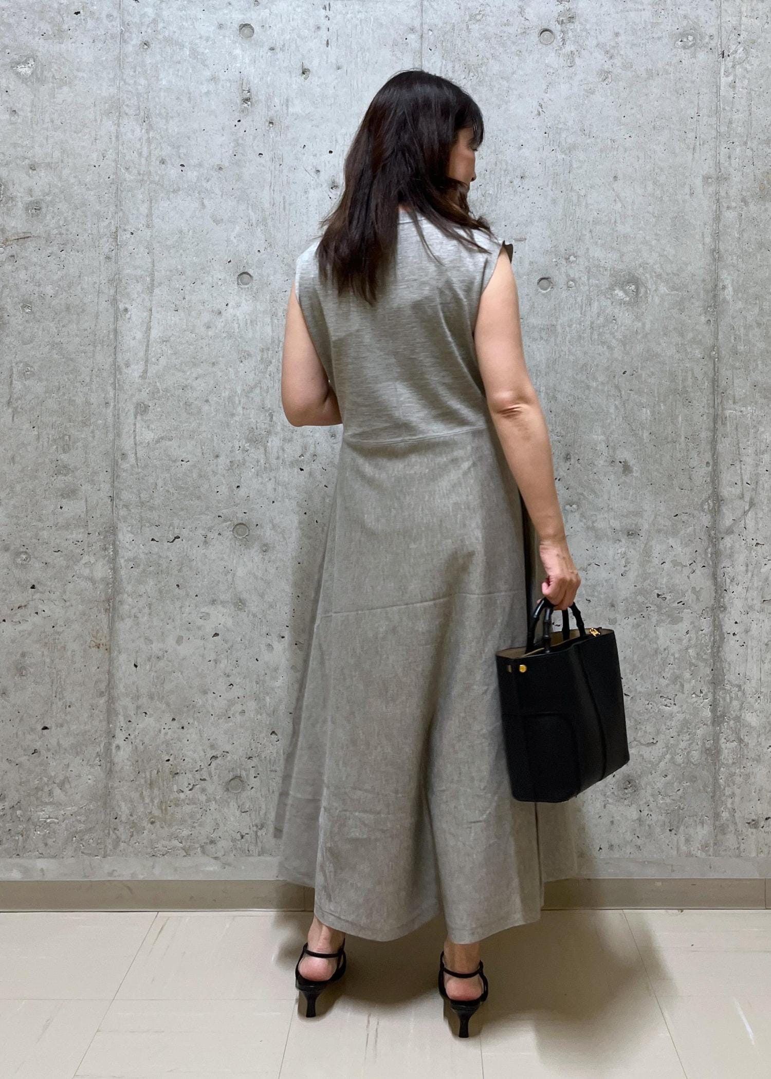 ウエストに切り替えは高めの位置にあるので、脚長効果もあり、小柄な方が着てもスタイル良く見えるシルエットです。