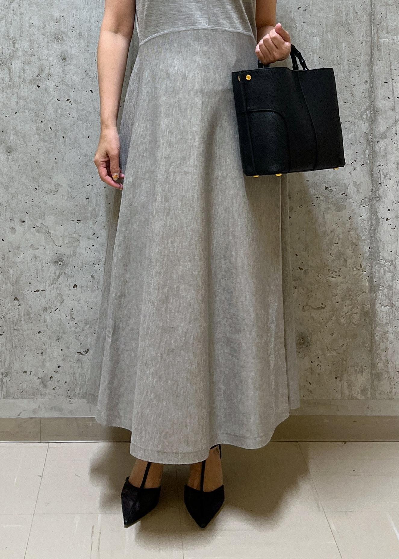 着丈はふくらはぎが隠れる位の丈で、ふんわりとしたフレアーは歩く度に動きがありとても綺麗です。