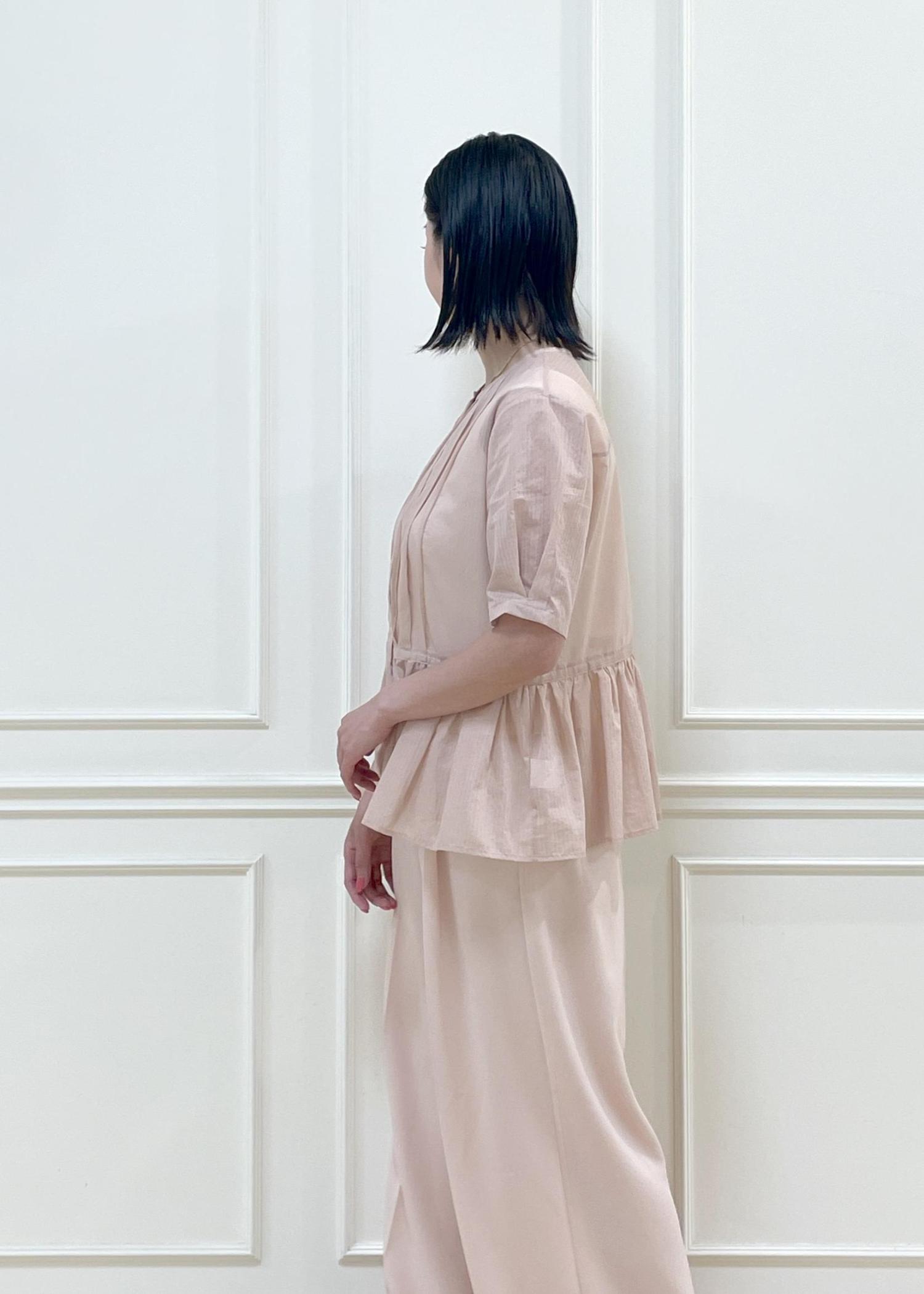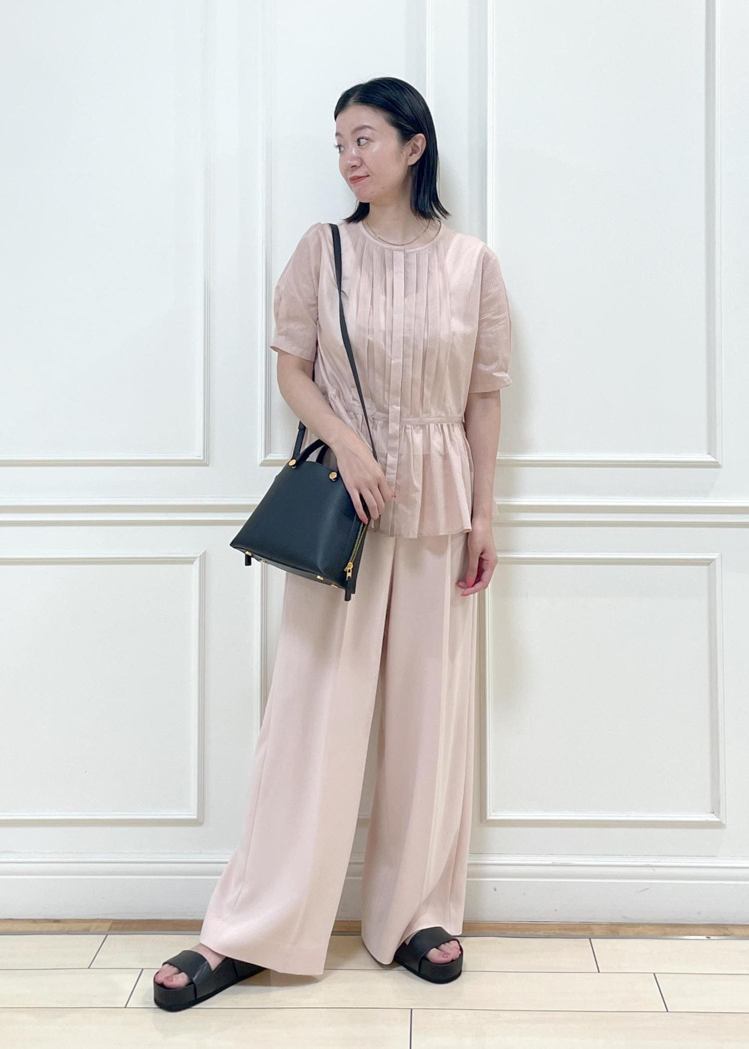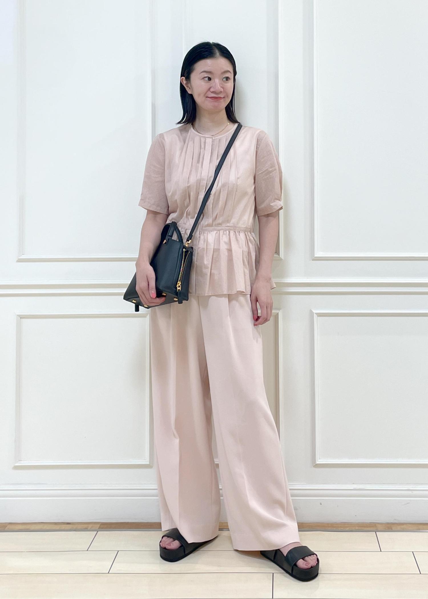 ピンクブラウス×ピンクパンツのコーディネートです♩