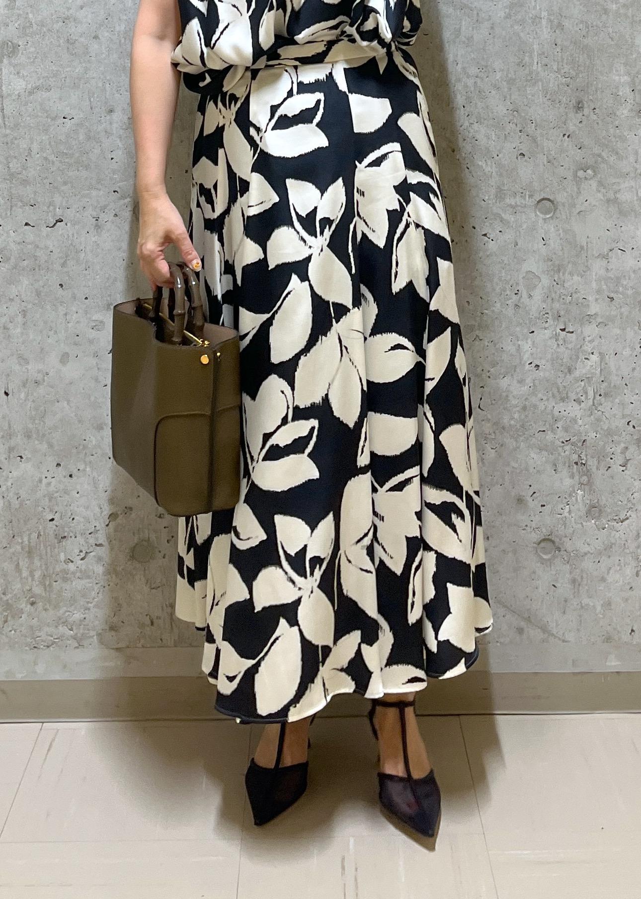 落ち感のあるフレアスカートで広がりすぎず、歩く度に動きがあるのでとてもキレイなシルエットです。 -