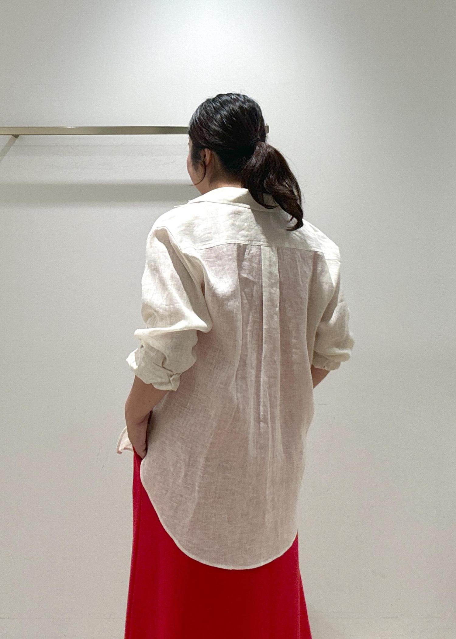 単体で着用も素敵ですし、羽織りとしても活躍してくれるリネンシャツです。