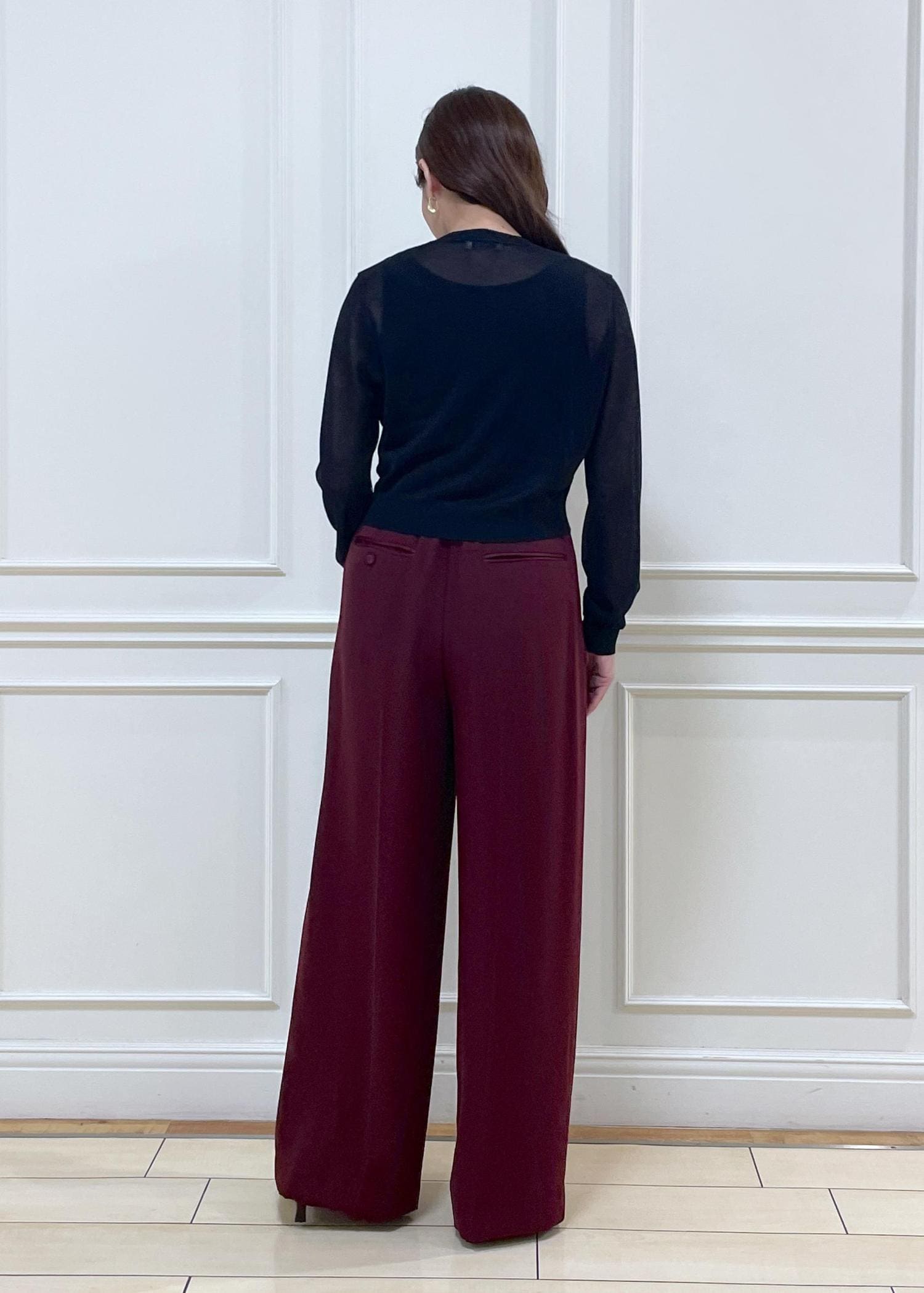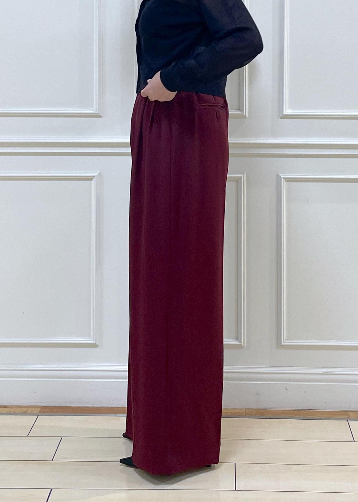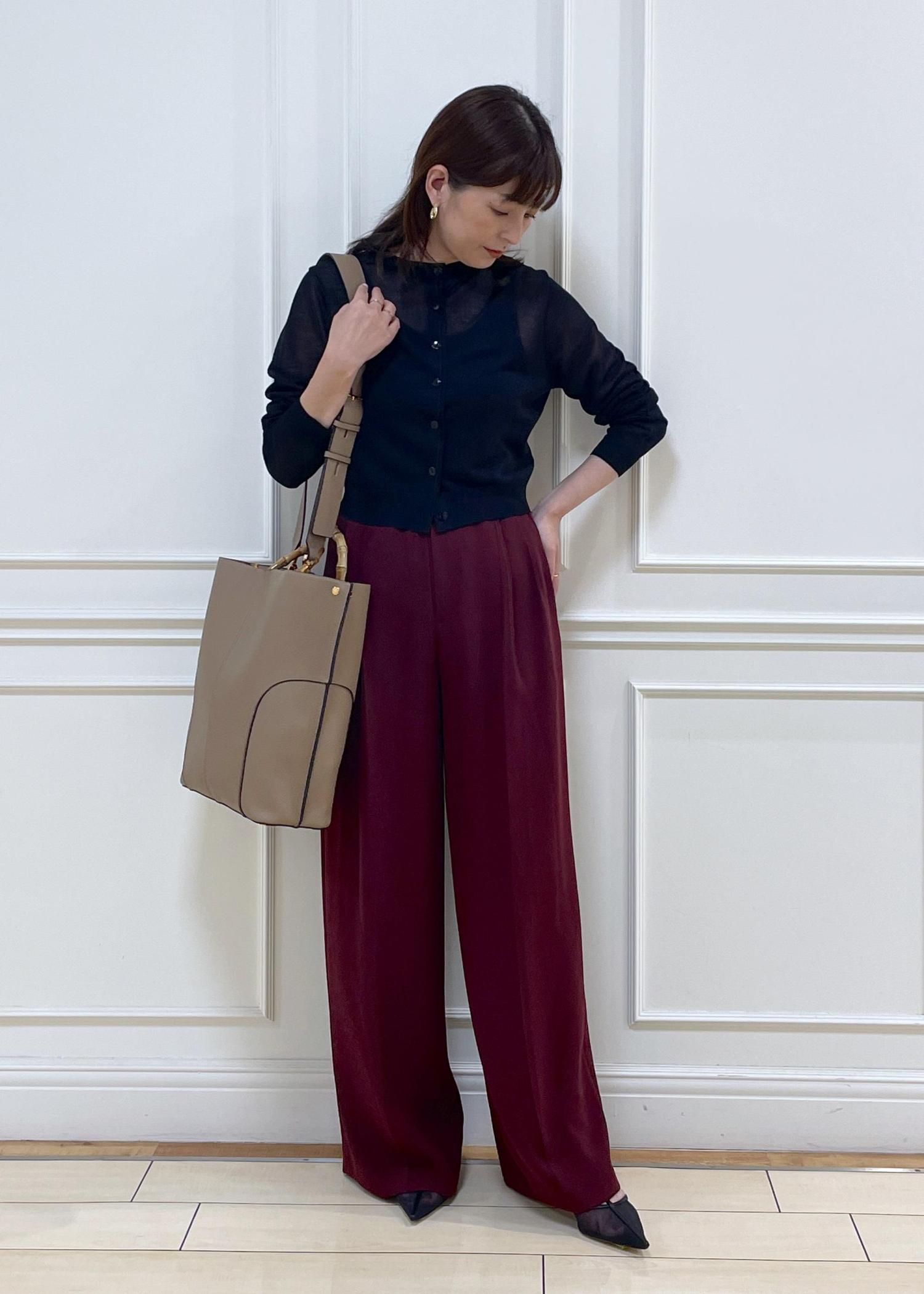 ROPÉ【洗える・カセット服】ライトトリアセイージーワイドパンツ/お仕事・通勤・セットアップ対応ワイン / 36¥25,300レビュー身長156cm、36size着用。