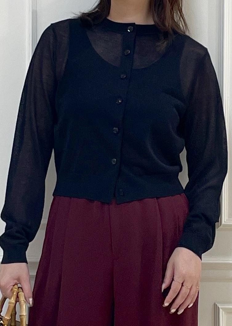 ROPÉ【洗える】LEVITAクルーネックシアーカーディガンブラック / F¥13,860レビューFsize着用。