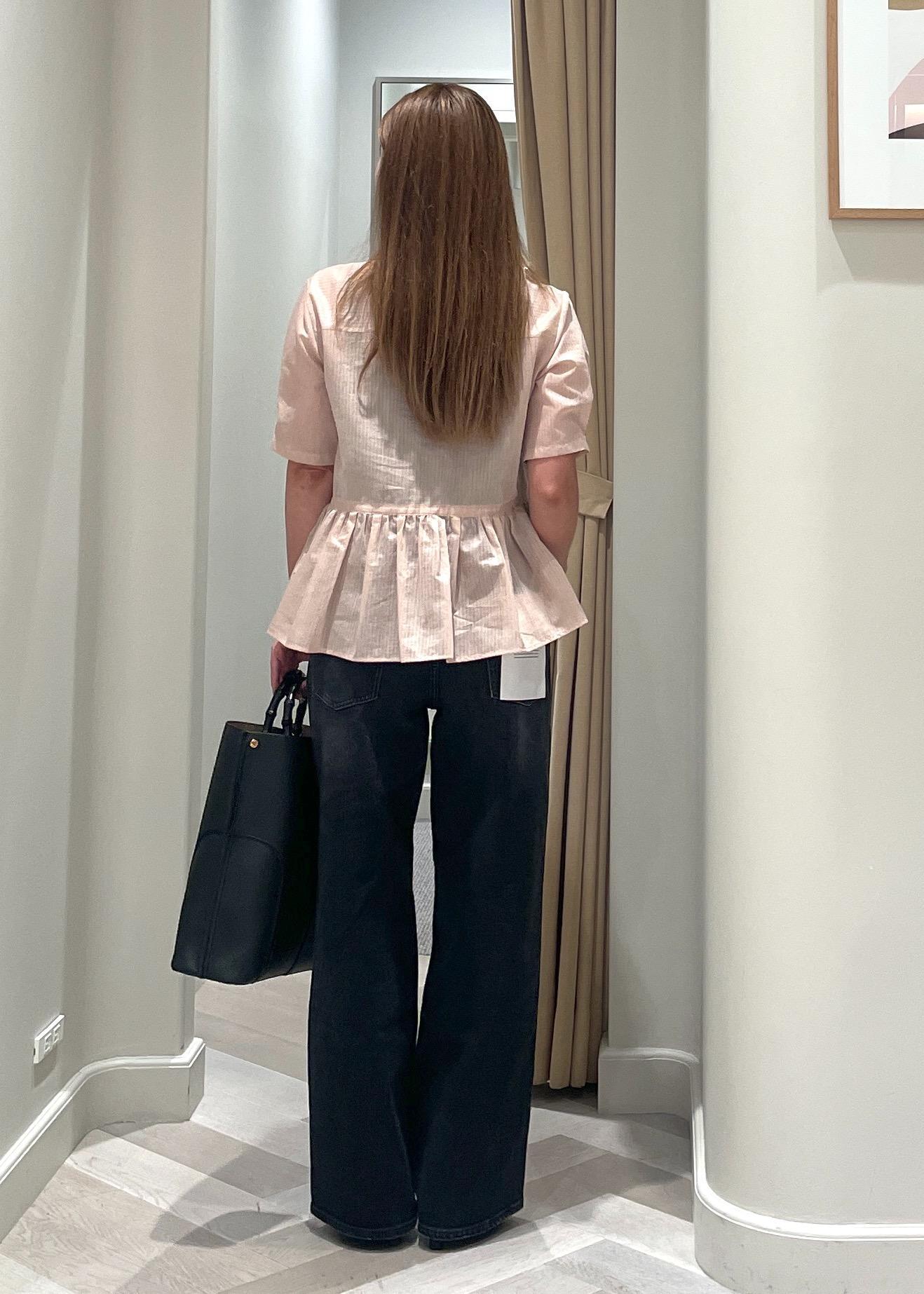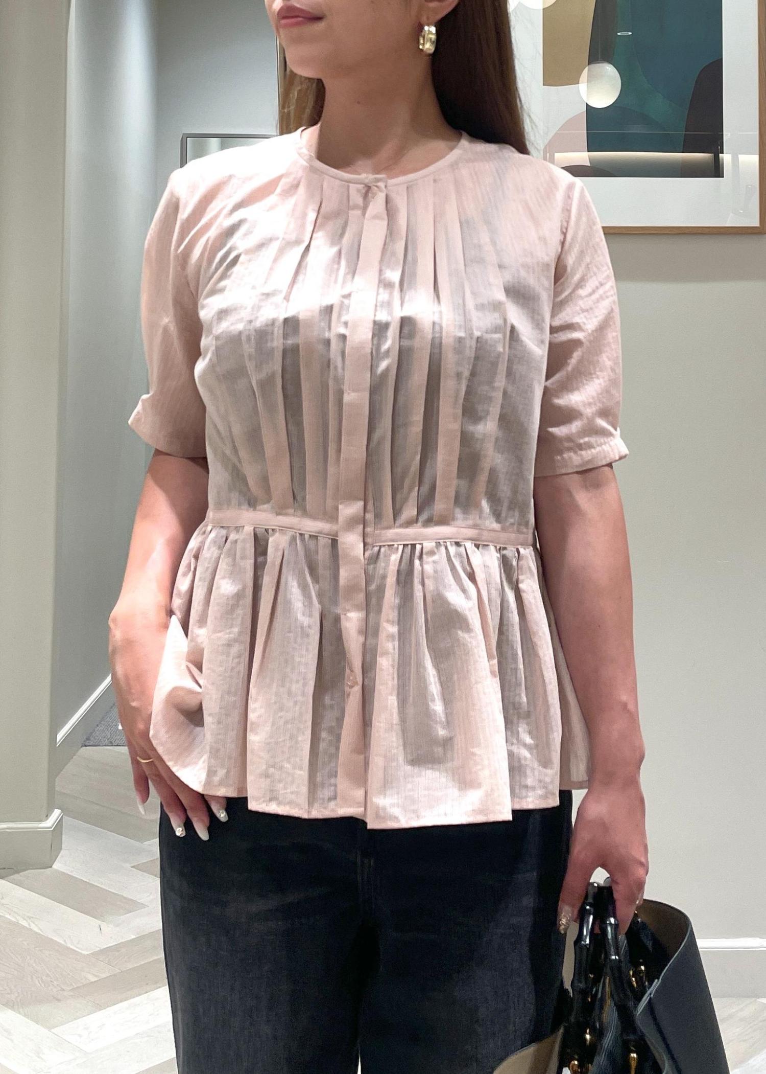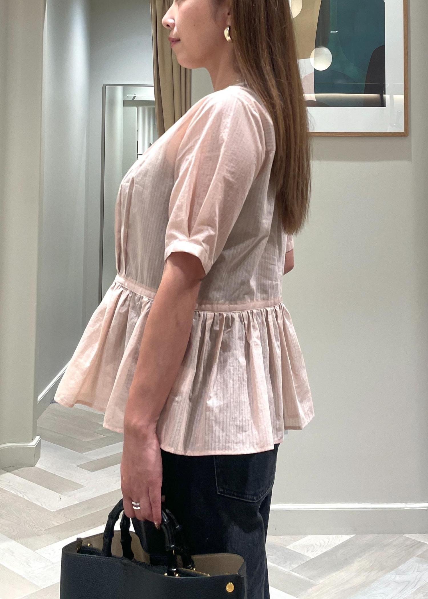 アウトレットROPÉ【洗える】ストライプペプラムブラウスピンク / F¥8,800レビューシアー感がありながらも、