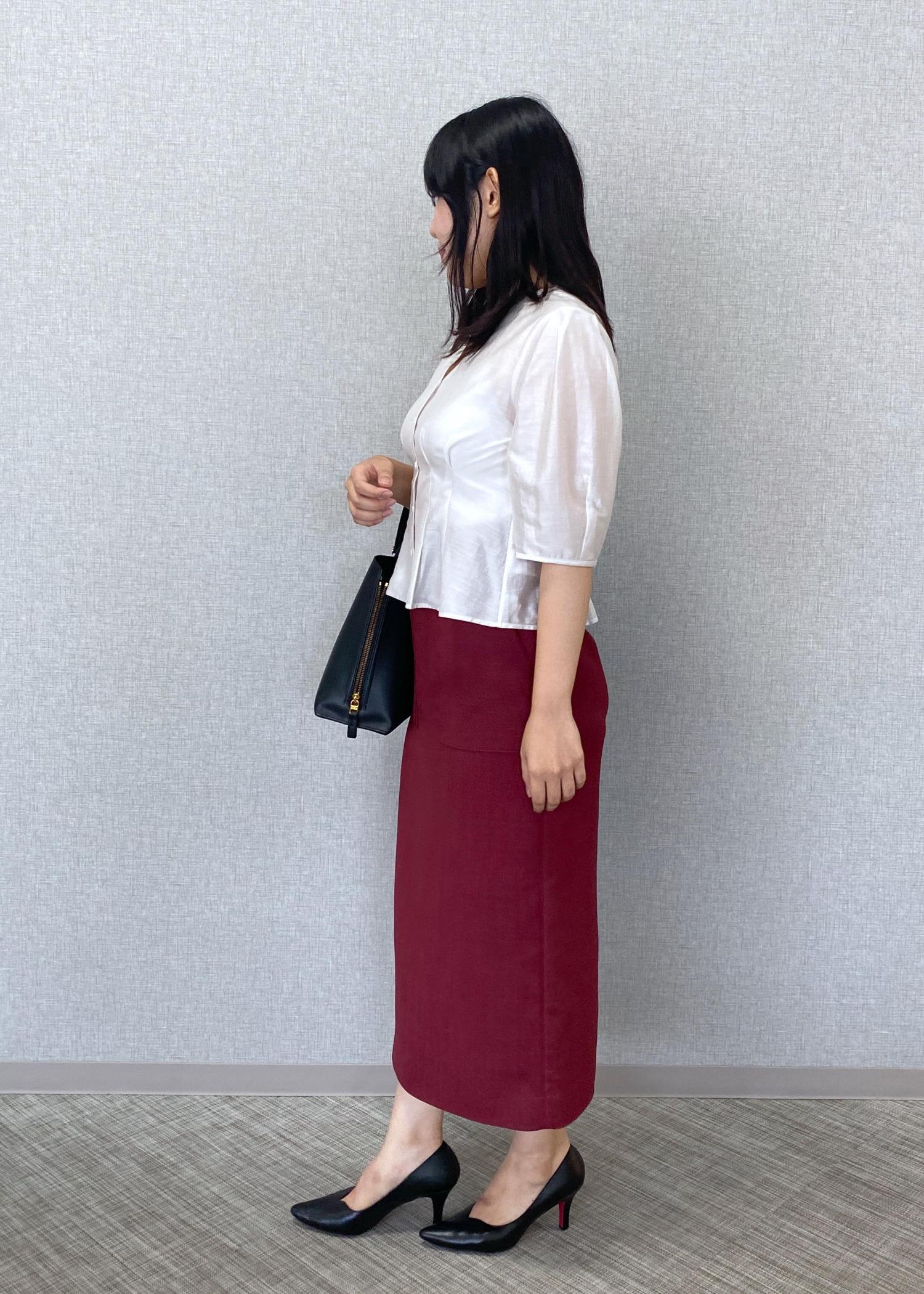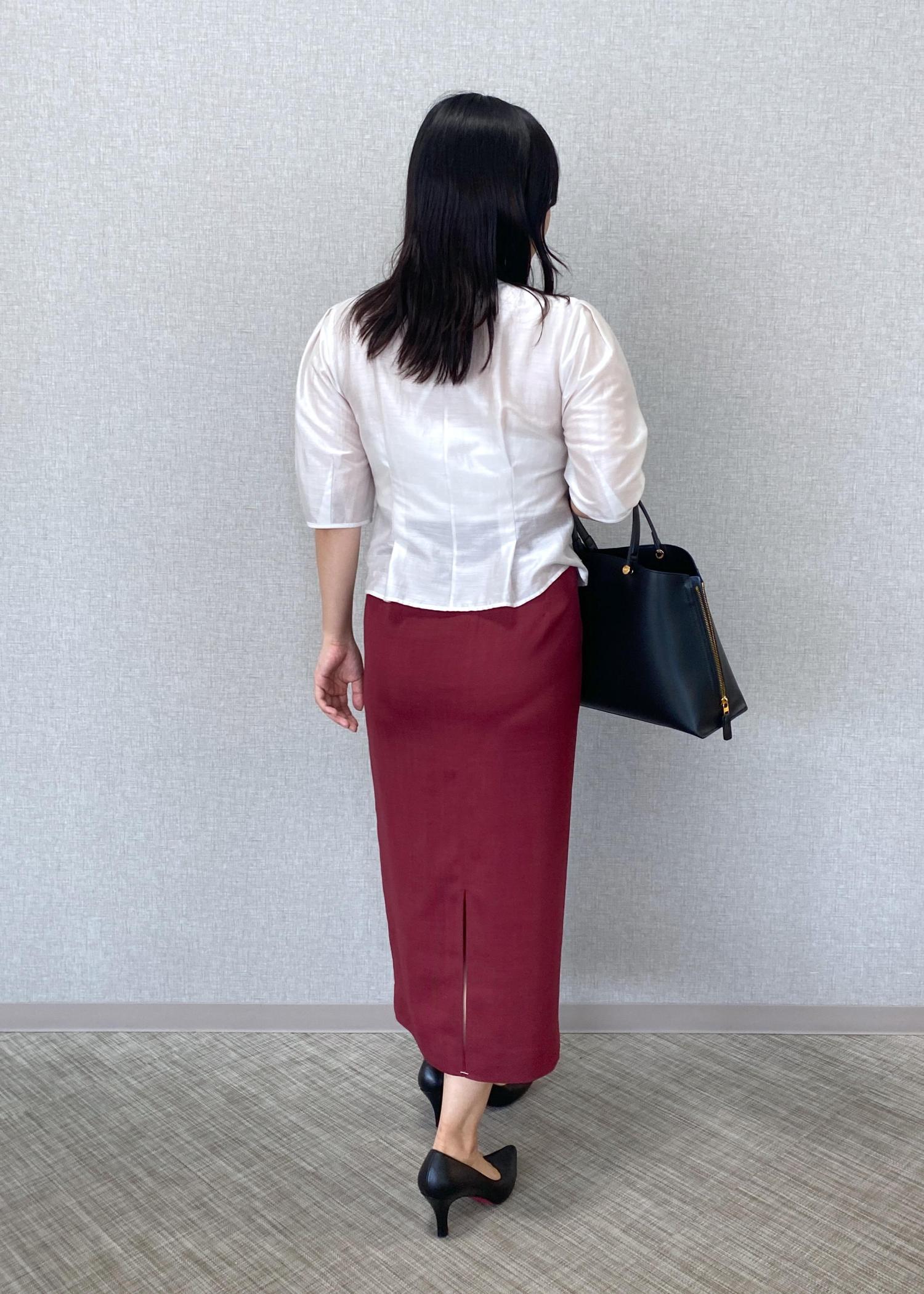 ROPÉリネンライク ポケット付きタイトスカート/イージーケアワイン / 38¥20,900レビュー定番のタイトスカートのシルエットの晩夏verです!