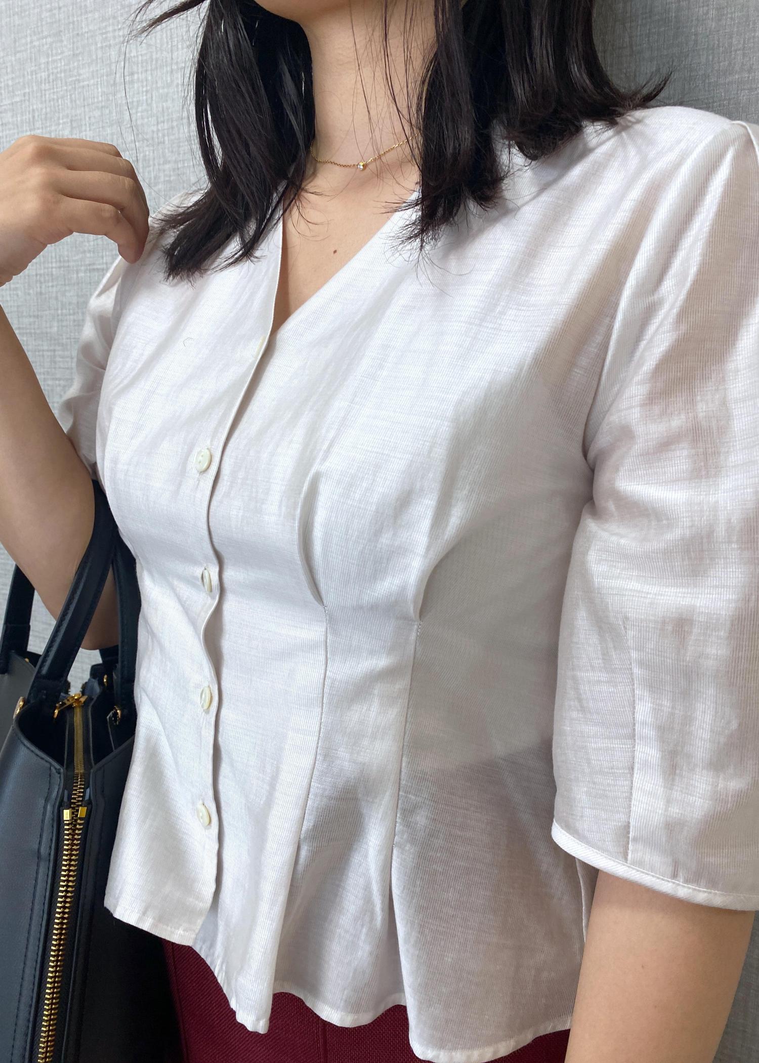 ROPÉ【洗える・羽織にもなる】Vネック5分袖パフスリーブブラウスホワイト系 / F¥18,700レビュー春に人気だったシリーズの