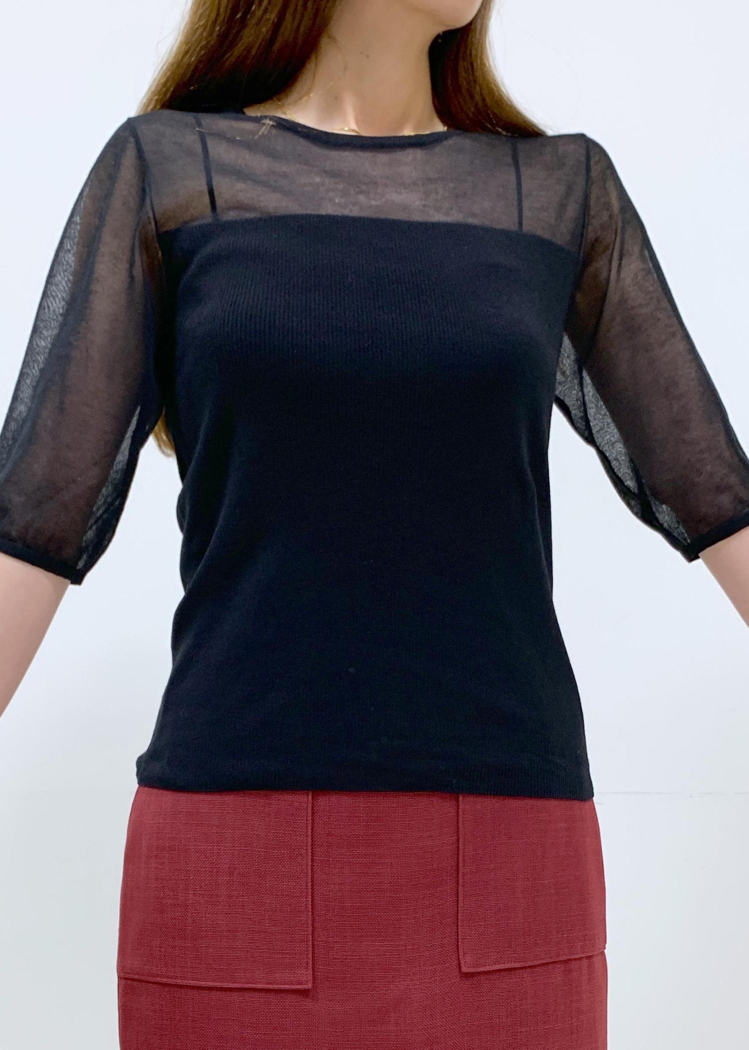 スカートやパンツにインしやすくシンプルですがシアー感が涼しげで合わせやすいトップスです。 -