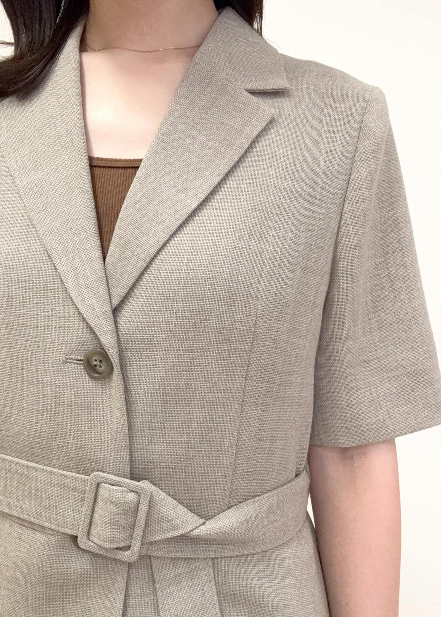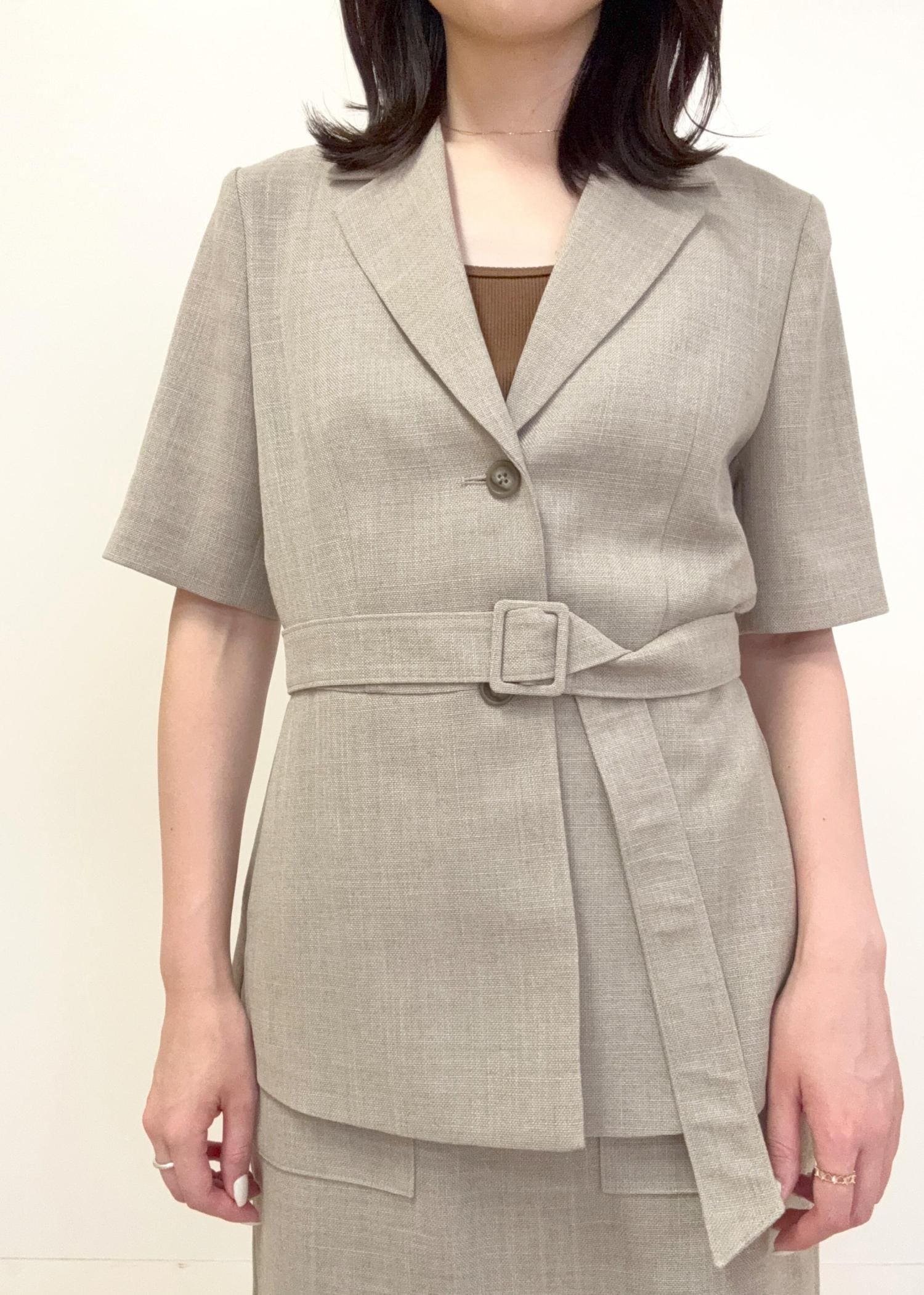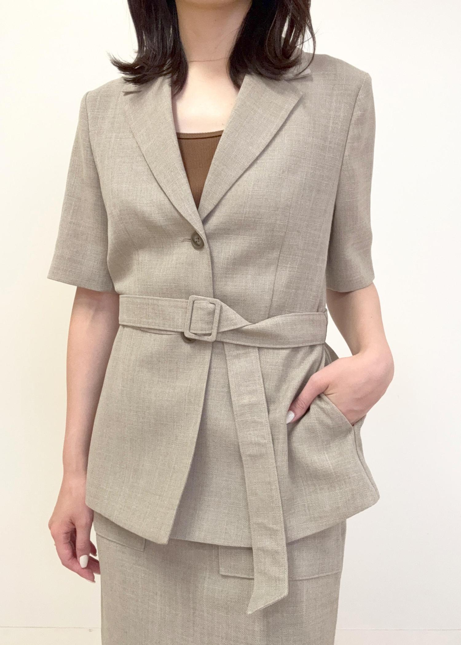 リネンライク ベルテッドジャケット/セットアップ対応