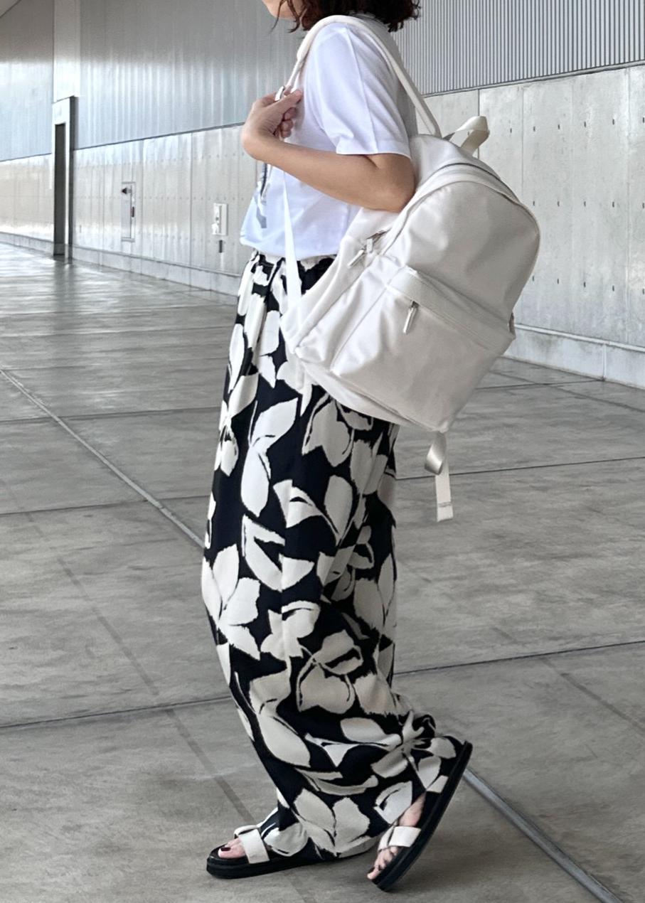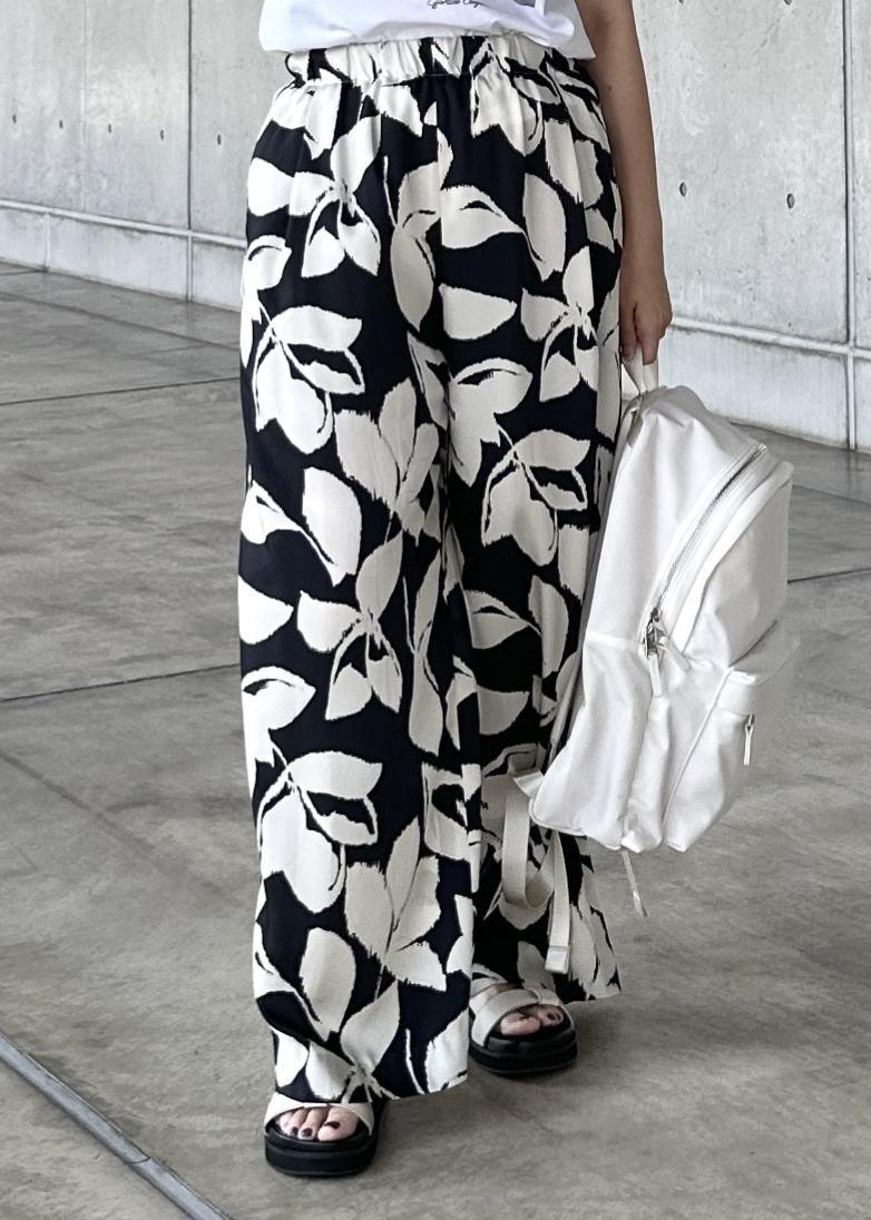 DEVEAUXジオメトリックフラワーイージーワイドパンツ