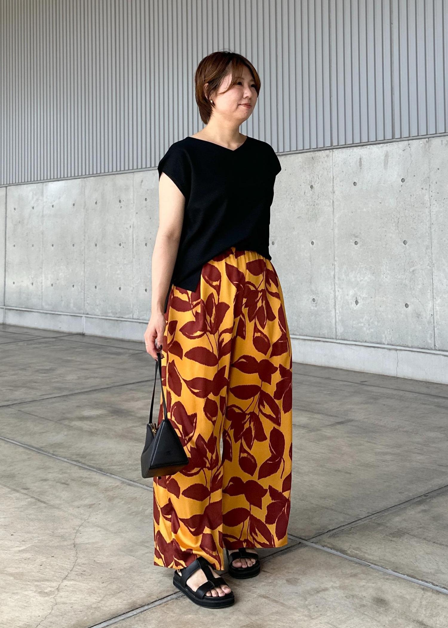 アウトレットROPÉDEVEAUXジオメトリックフラワーイージーワイドパンツオレンジ / 38¥13,750レビュー162センチ 普段ボトム38、40サイズ