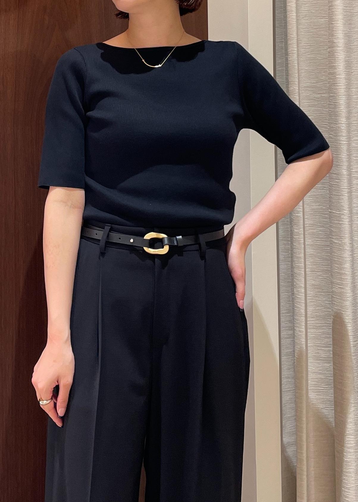 アウトレットROPÉ【洗える】テレコ5分袖ニットプルオーバーブラック / F¥8,250レビュー5分袖でスッキリとしたシルエットのめジャケットのインナーとしても重宝するアイテム。
